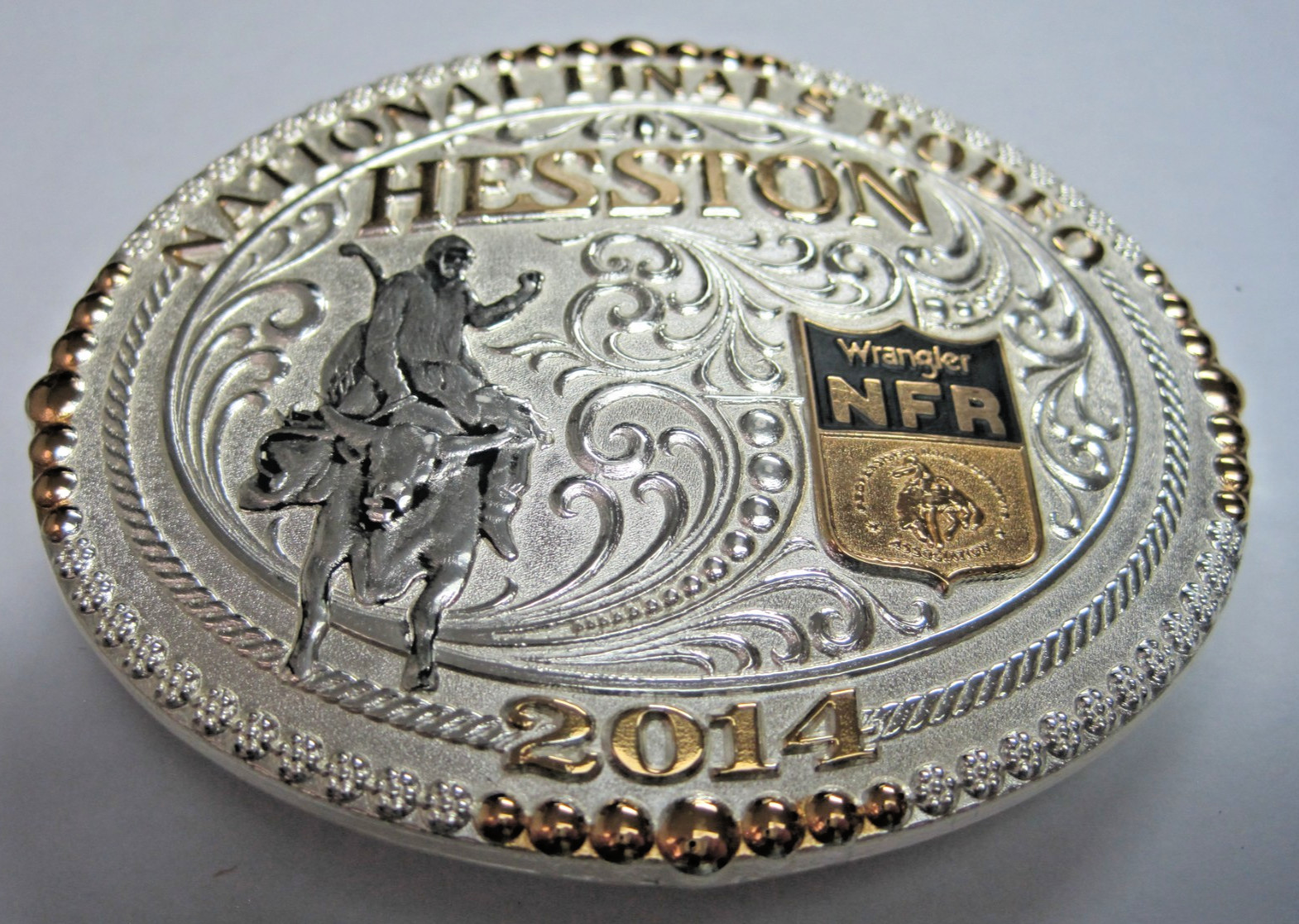 • Hesston Gold Silver 2014 NFR Cowboy Rodeo Adult Buckle New Montana Silversmith