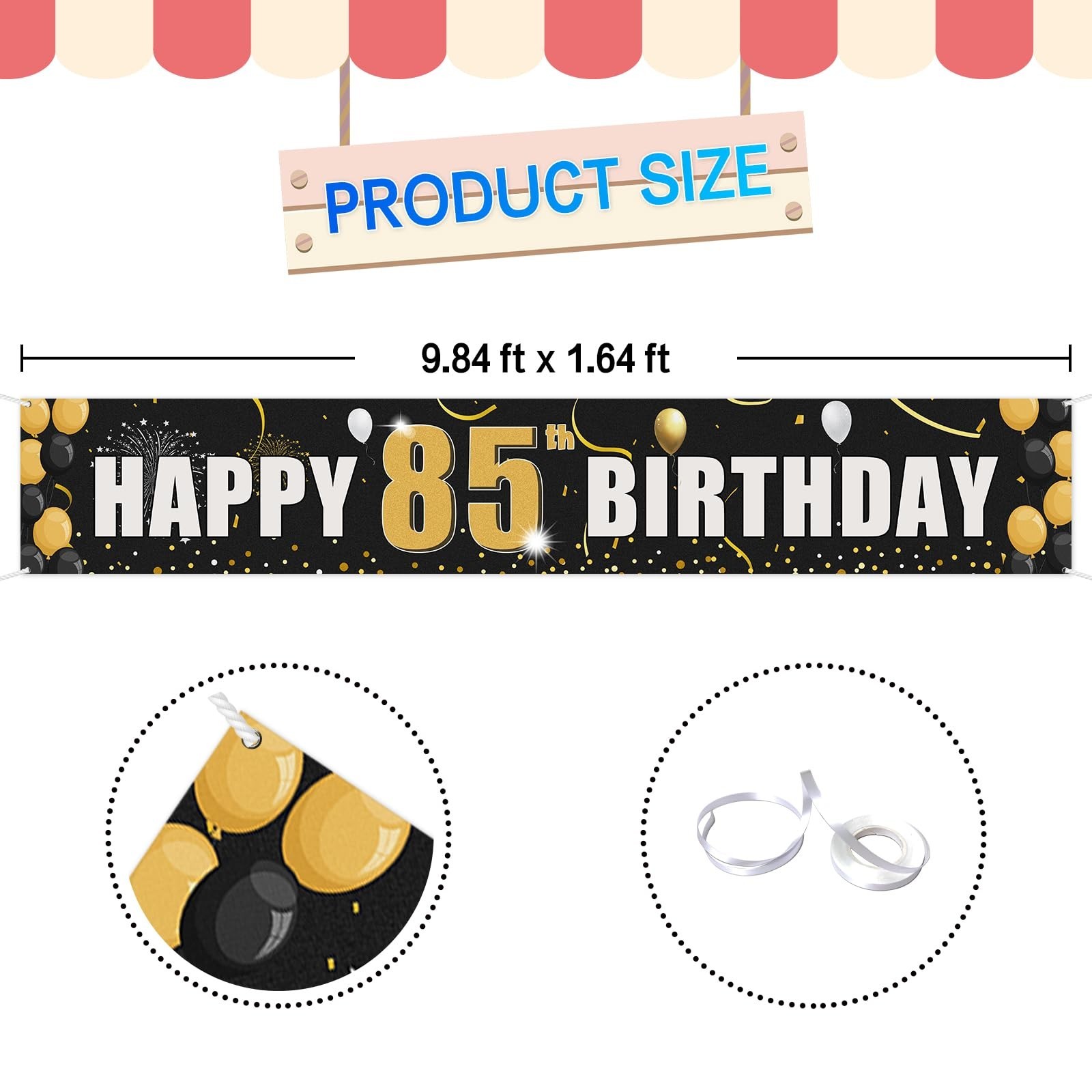 как выглядит Happy 85th Birthday Yard Banner, Golden 85th Birthday Party Hanging Decoratio... фото