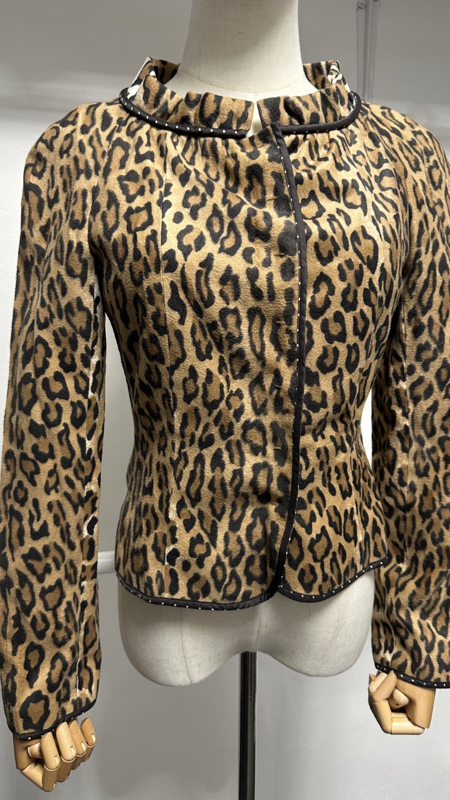 VTG 90's Moschino Cheap Chic Velour Leopard Animal Print Blazer Jacket
