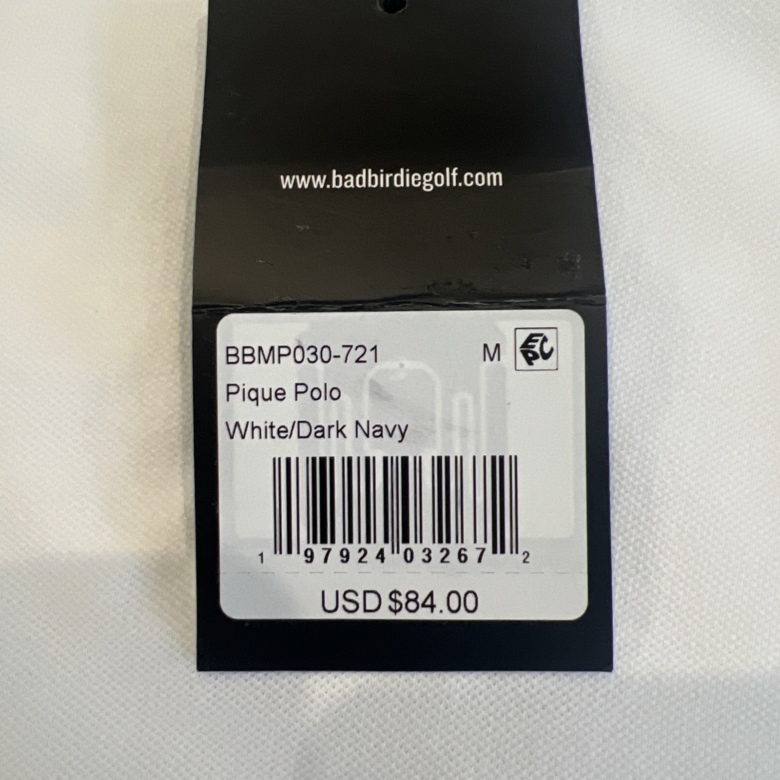 84 Bad Birdie Pique Golf Polo Shirt Mens M White Navy Red Shirt Short Sleeve
