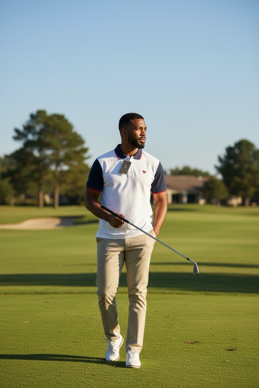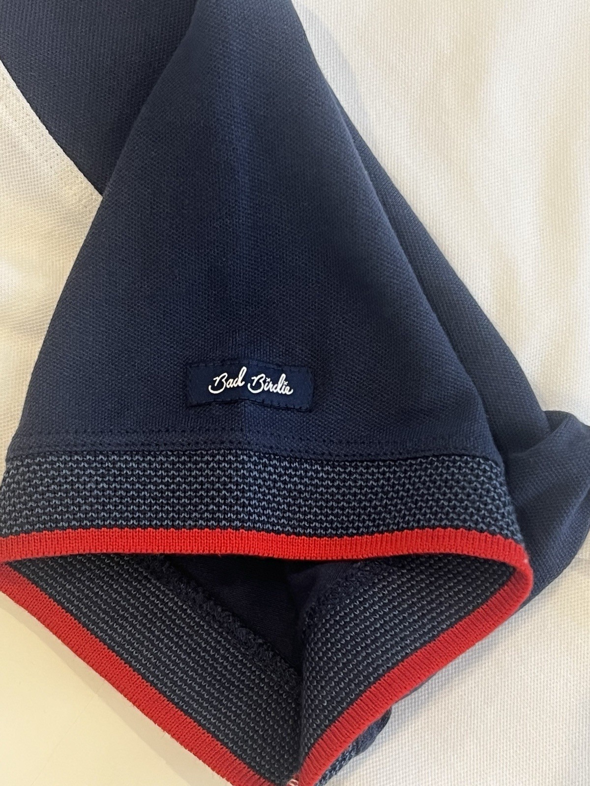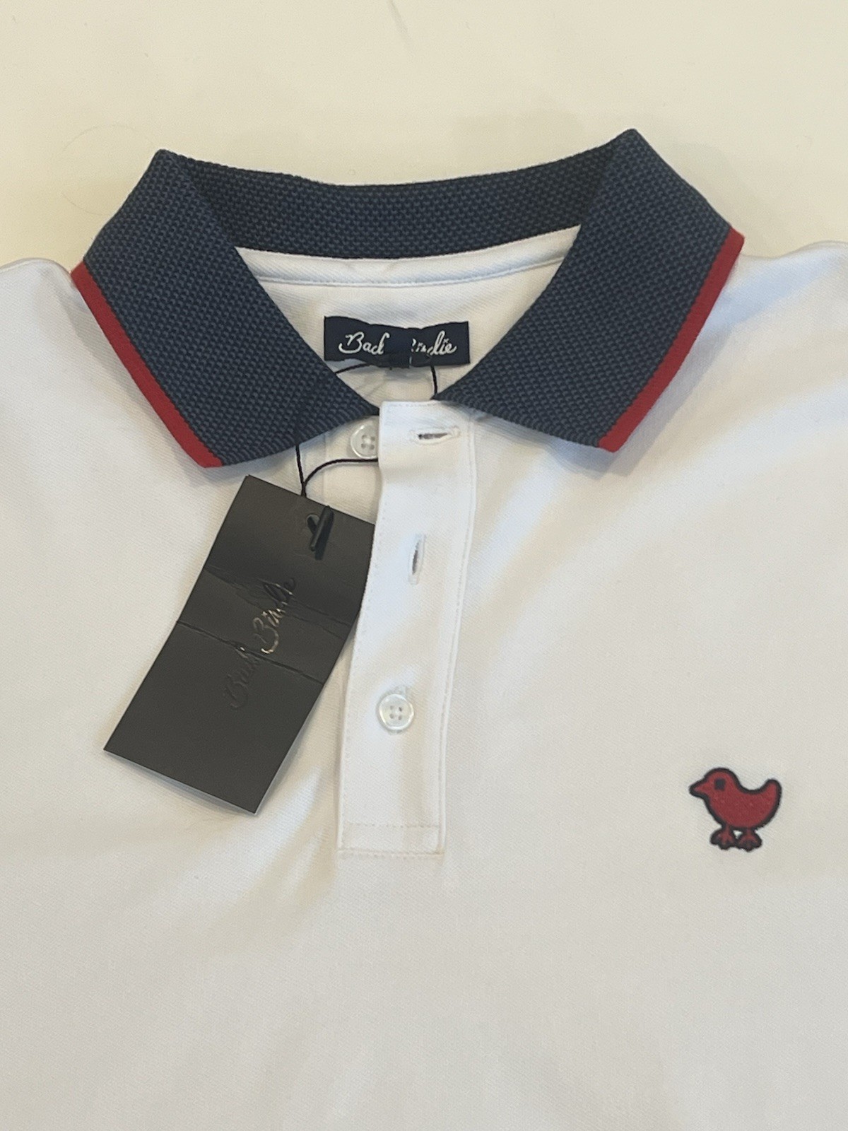 как выглядит 84 Bad Birdie Pique Golf Polo Shirt Mens M White Navy Red Shirt Short Sleeve фото