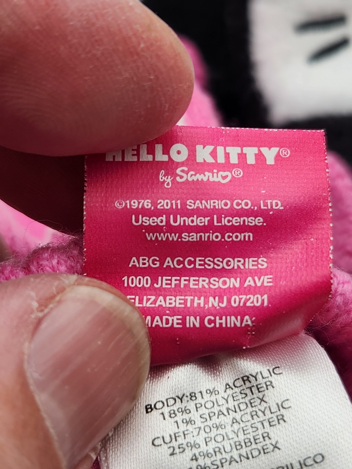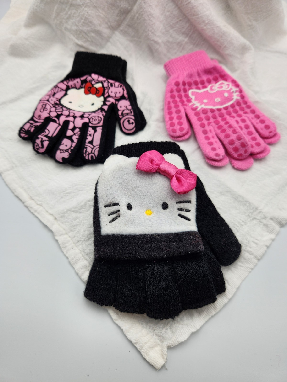 как выглядит Girls Hello Kitty Gloves Mittens Winter Warm Knit Grip Pink Black Convertible J3 фото