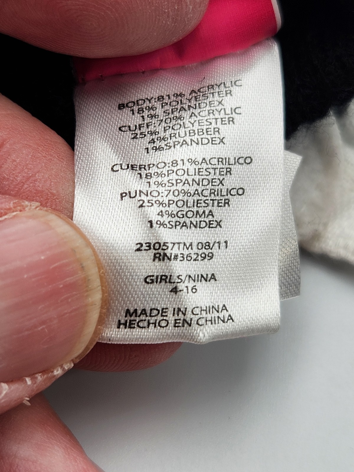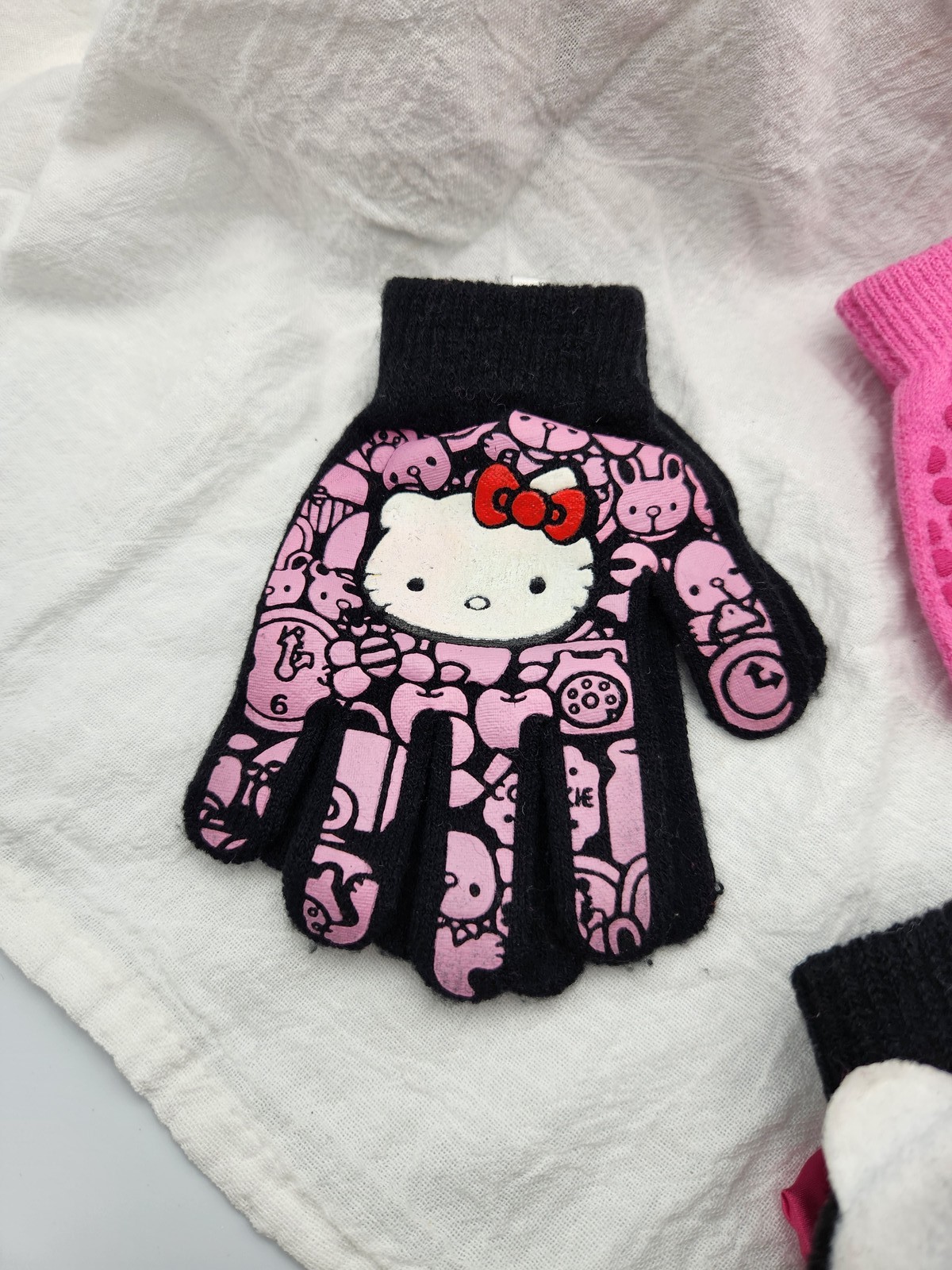 Girls Hello Kitty Gloves Mittens Winter Warm Knit Grip Pink Black Convertible J3