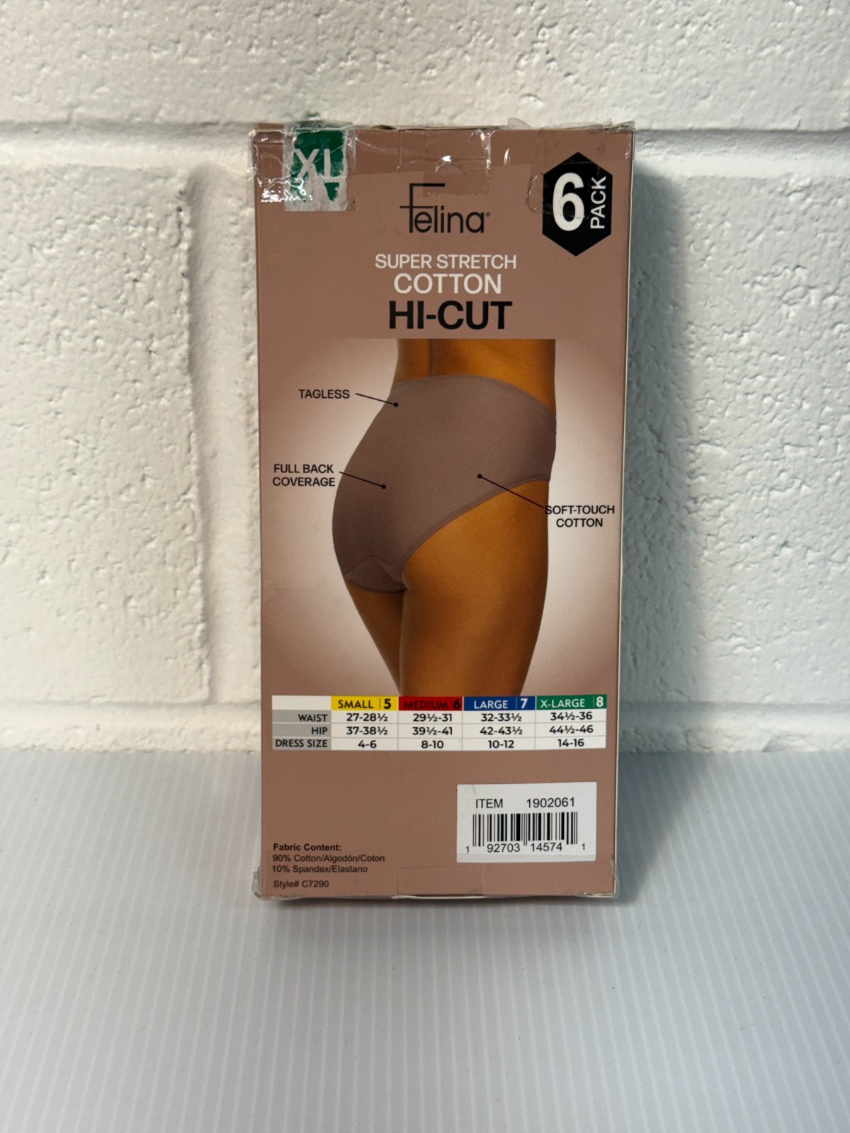 Felina Women's 6 Pack Super Stretch Cotton Hi-Cut Panties Size XL - Multicolor