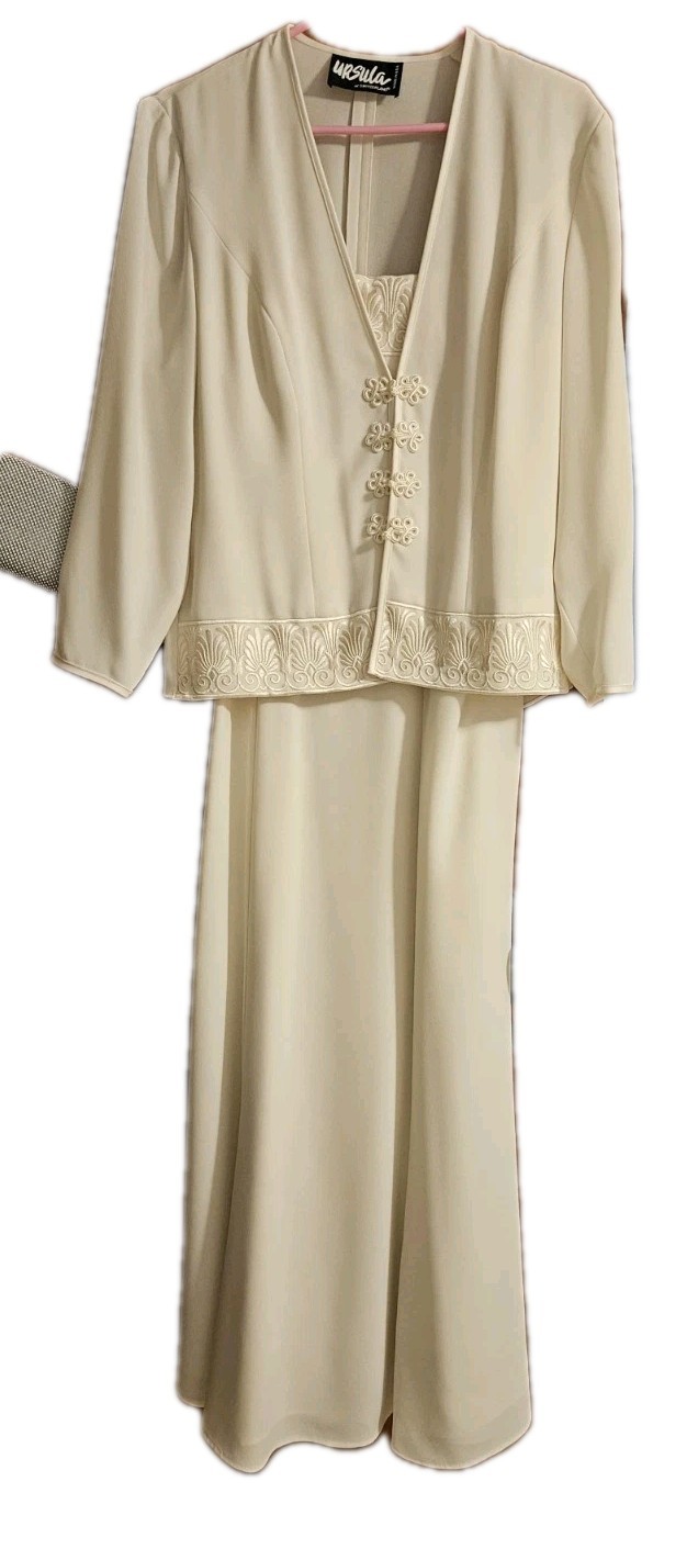 Ursula of Switzerland Ivory Long Dress Jacket Mother Of The Bride Size 4 USA