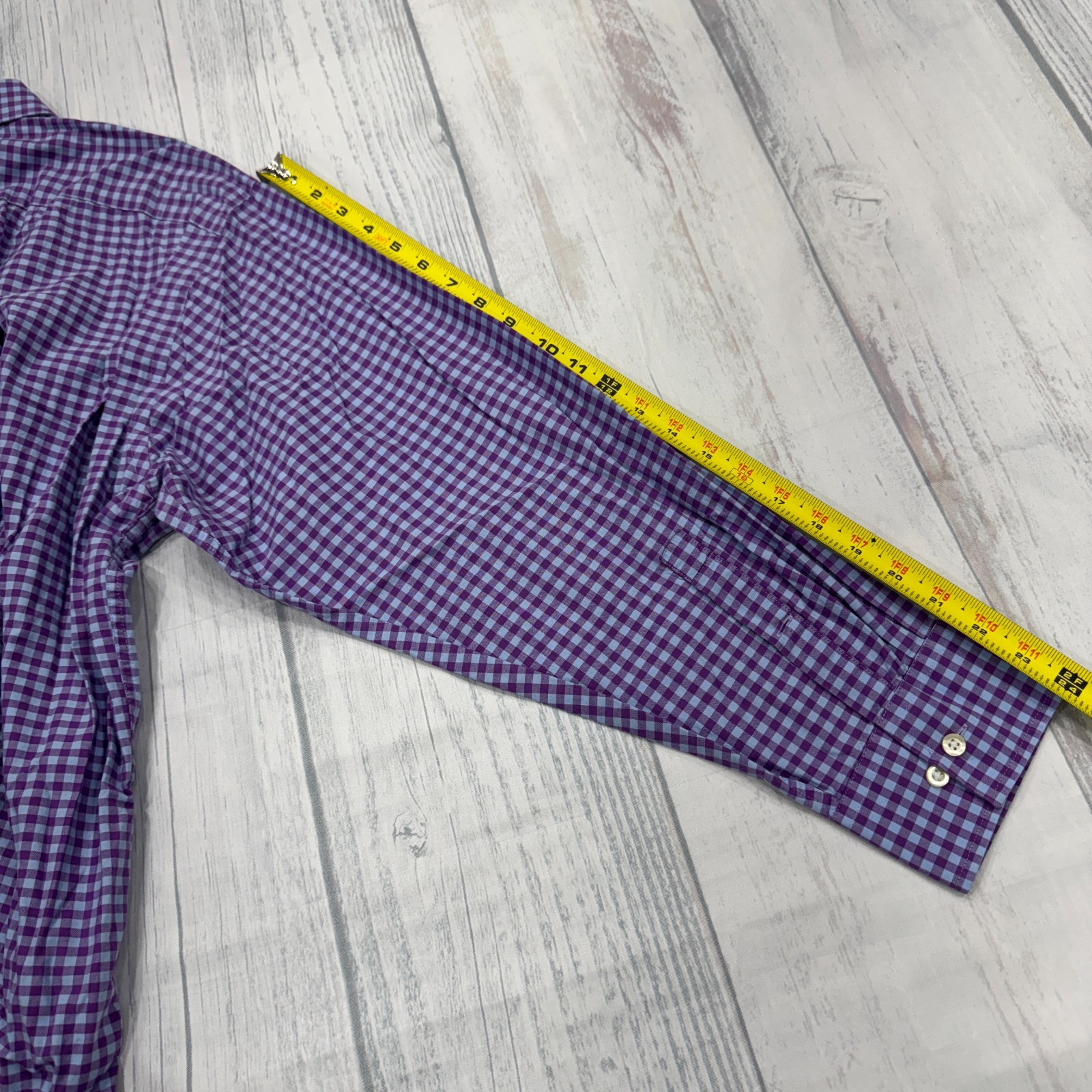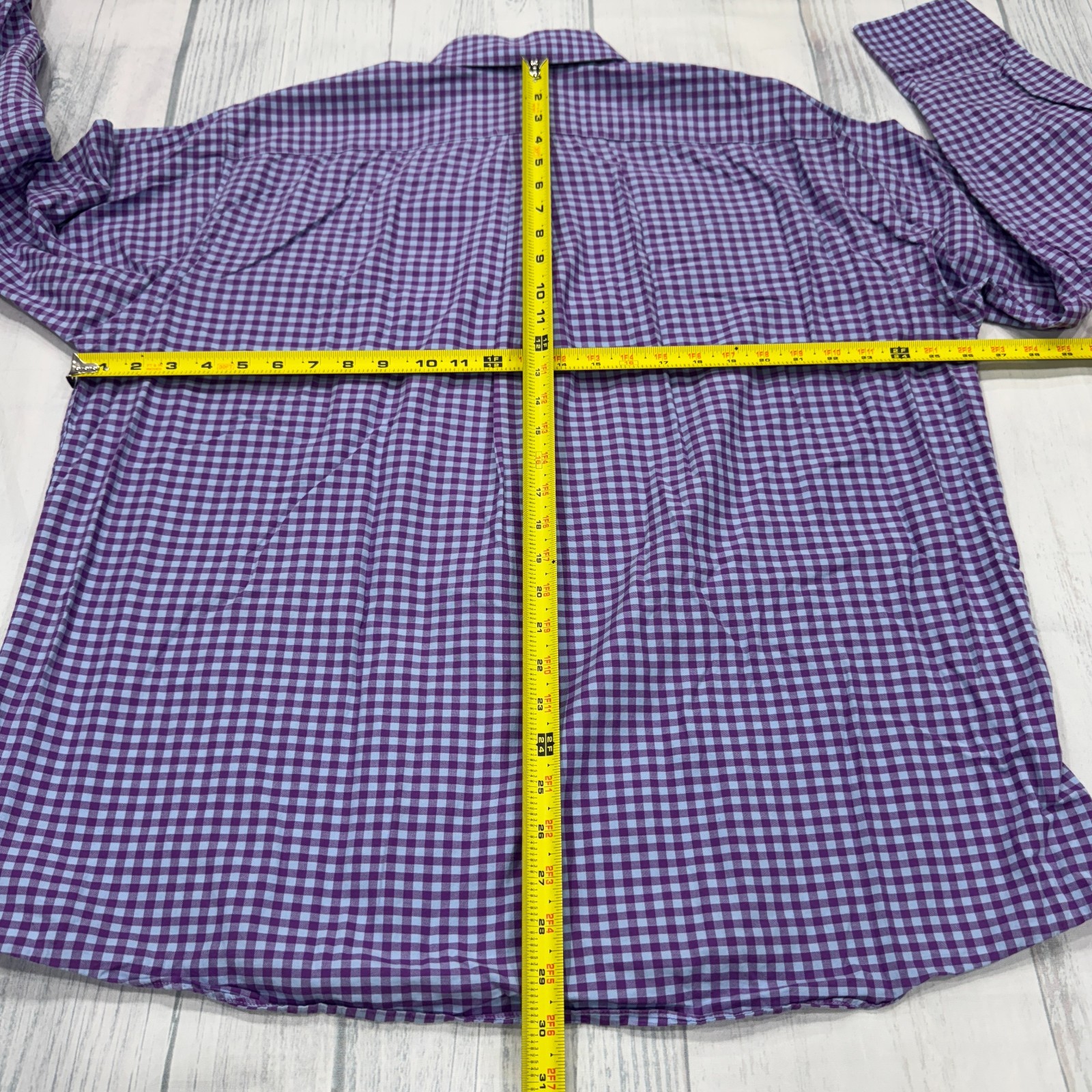 как выглядит Michael Kors Button Shirt 18 34/35 Plaid Purple Cotton Work Mens фото