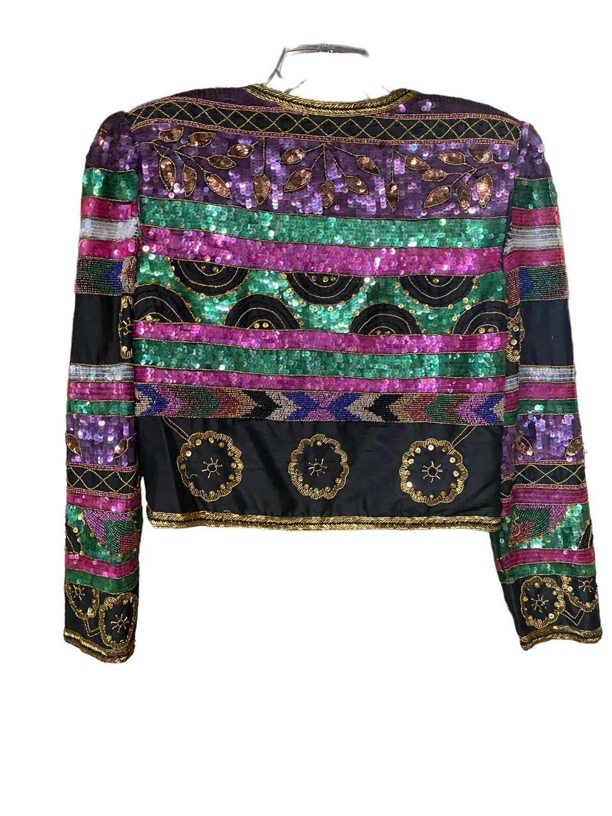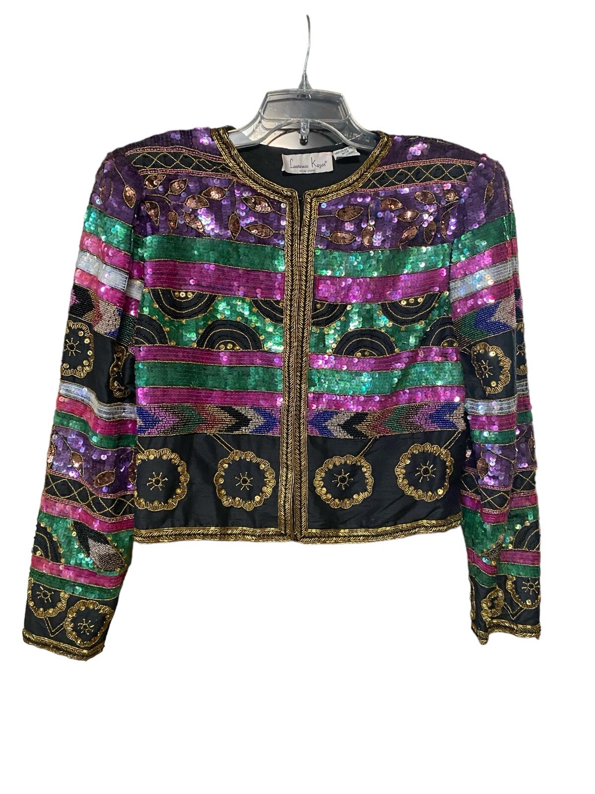 VTG Laurence Kazar Black Multi Silk Beaded Sequin Evening Jacket Blazer L