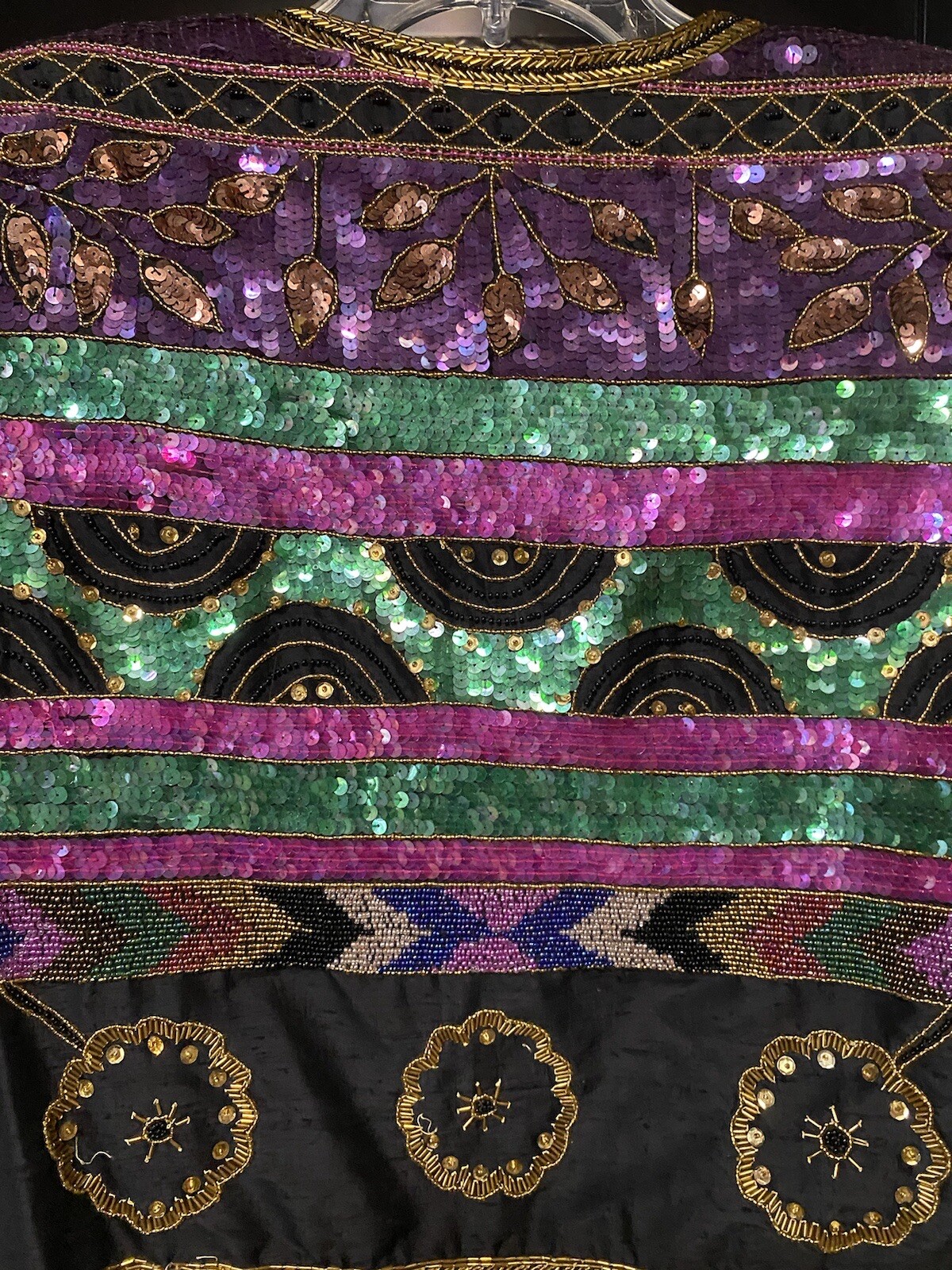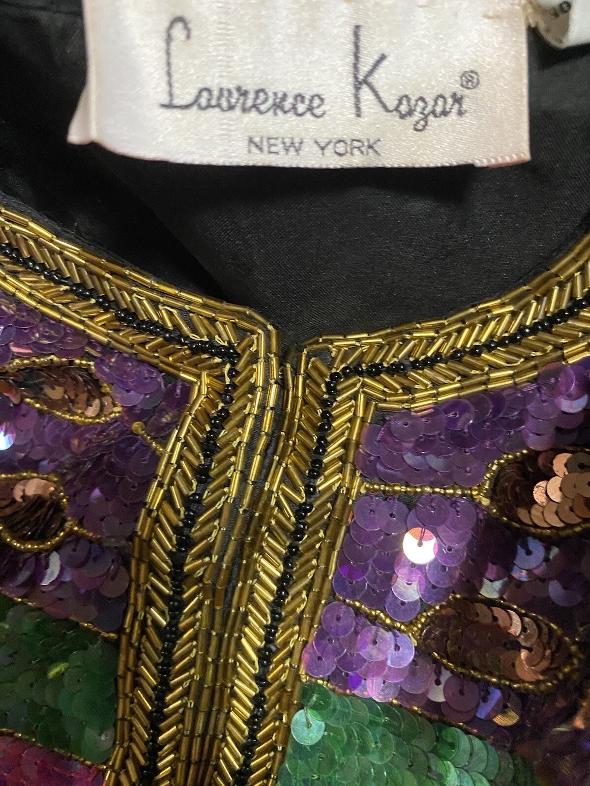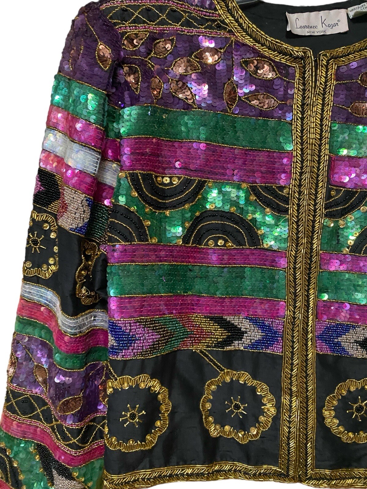 как выглядит VTG Laurence Kazar Black Multi Silk Beaded Sequin Evening Jacket Blazer L фото