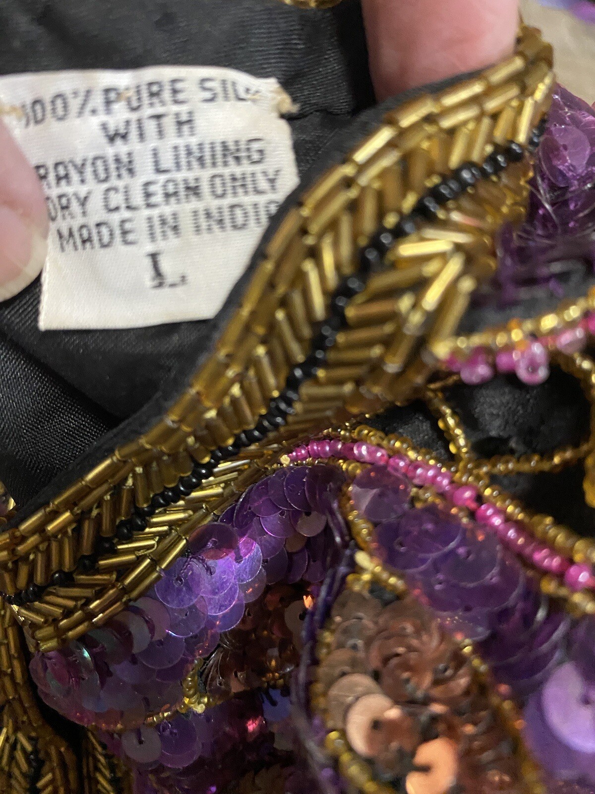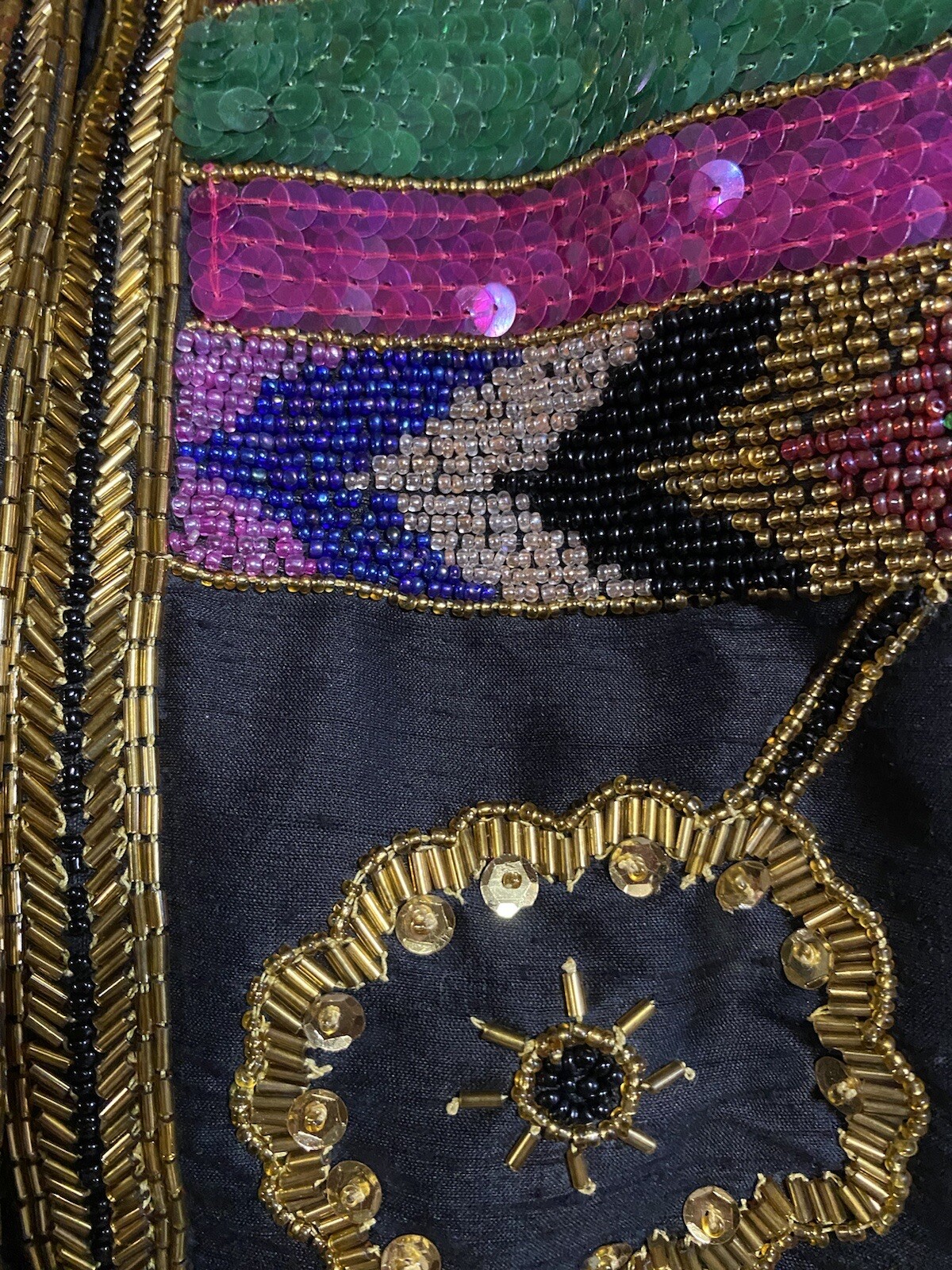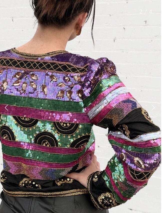 как выглядит VTG Laurence Kazar Black Multi Silk Beaded Sequin Evening Jacket Blazer L фото