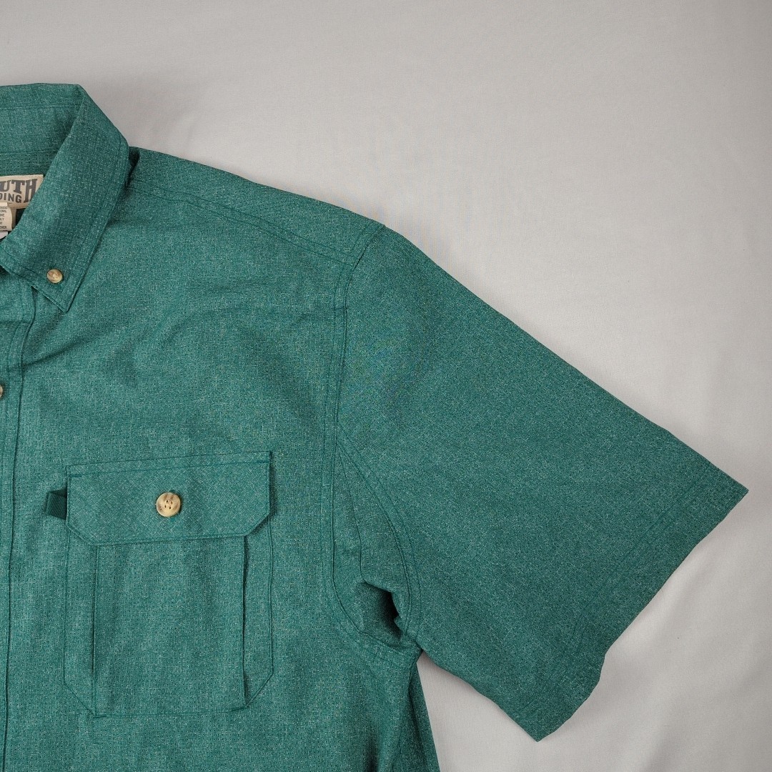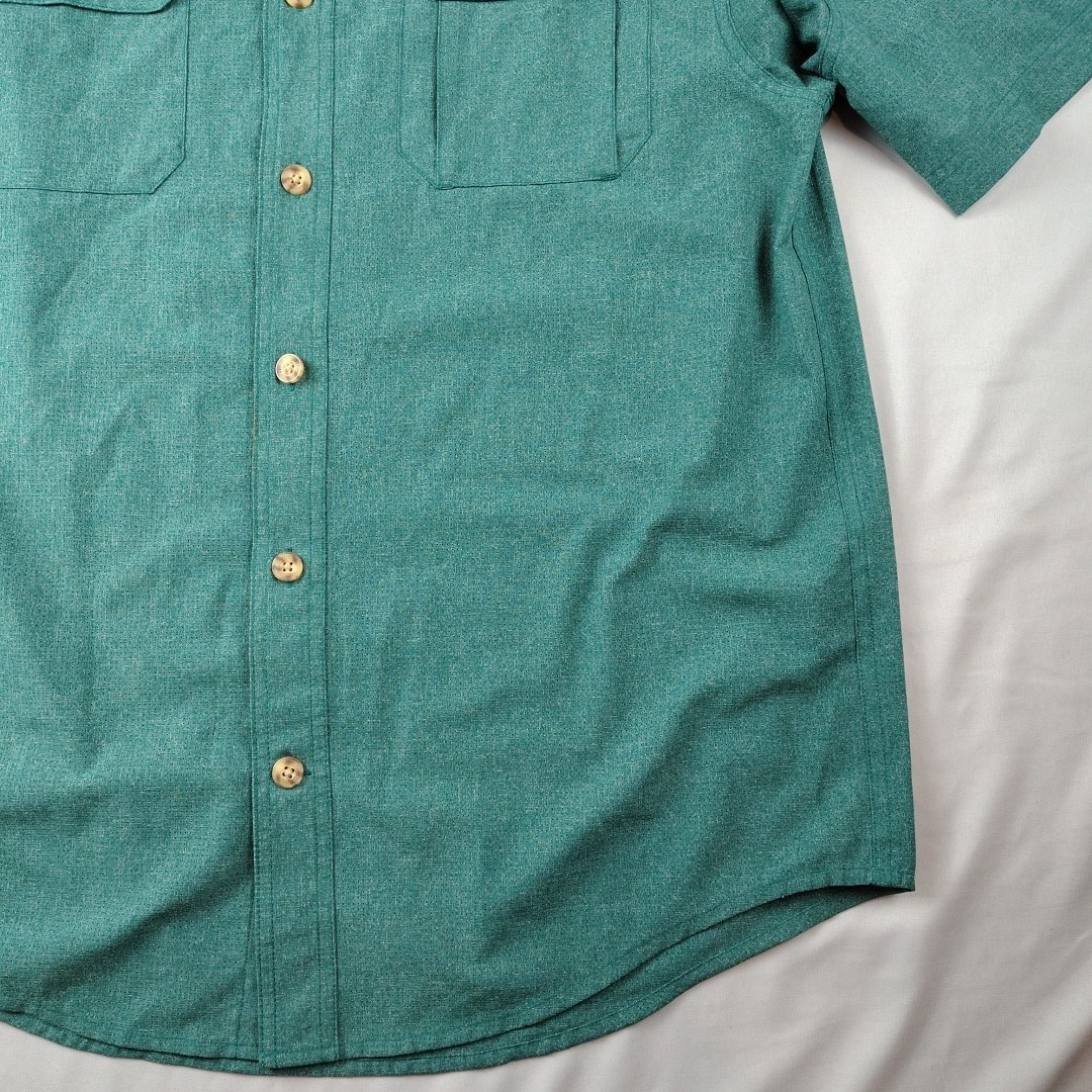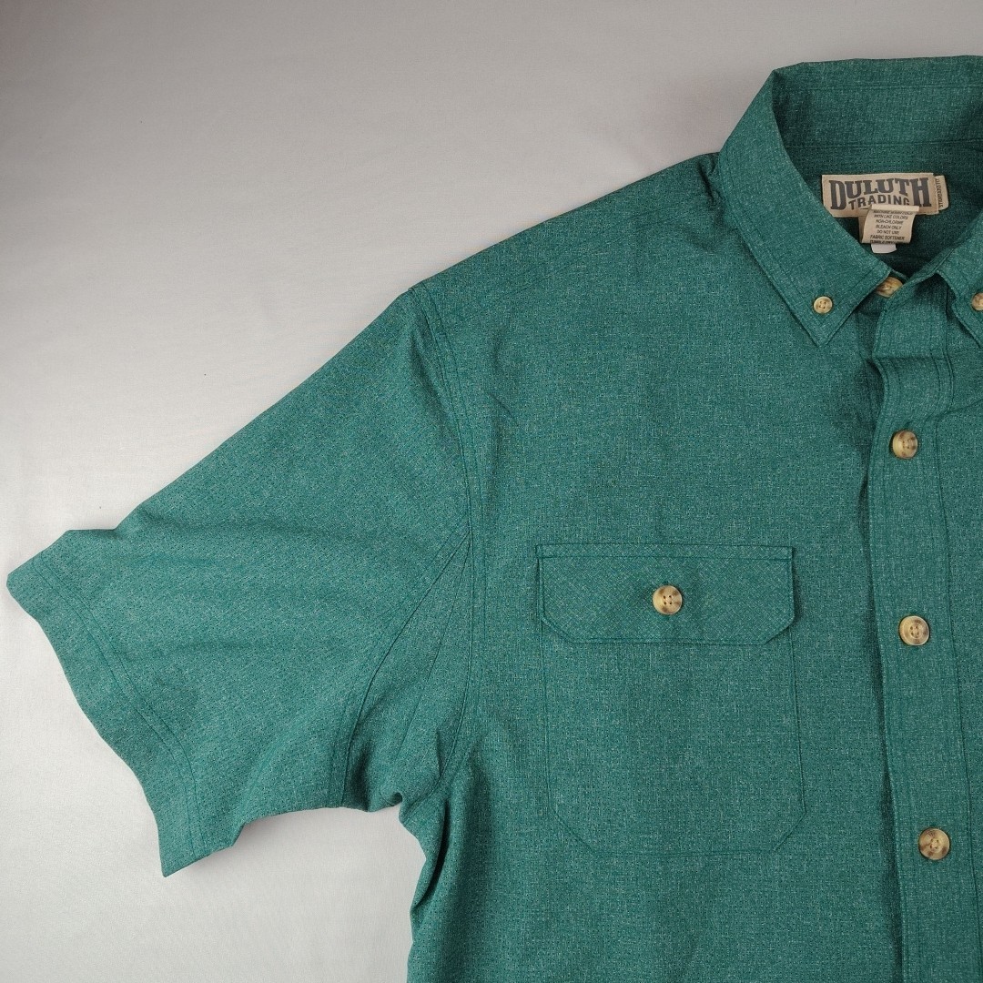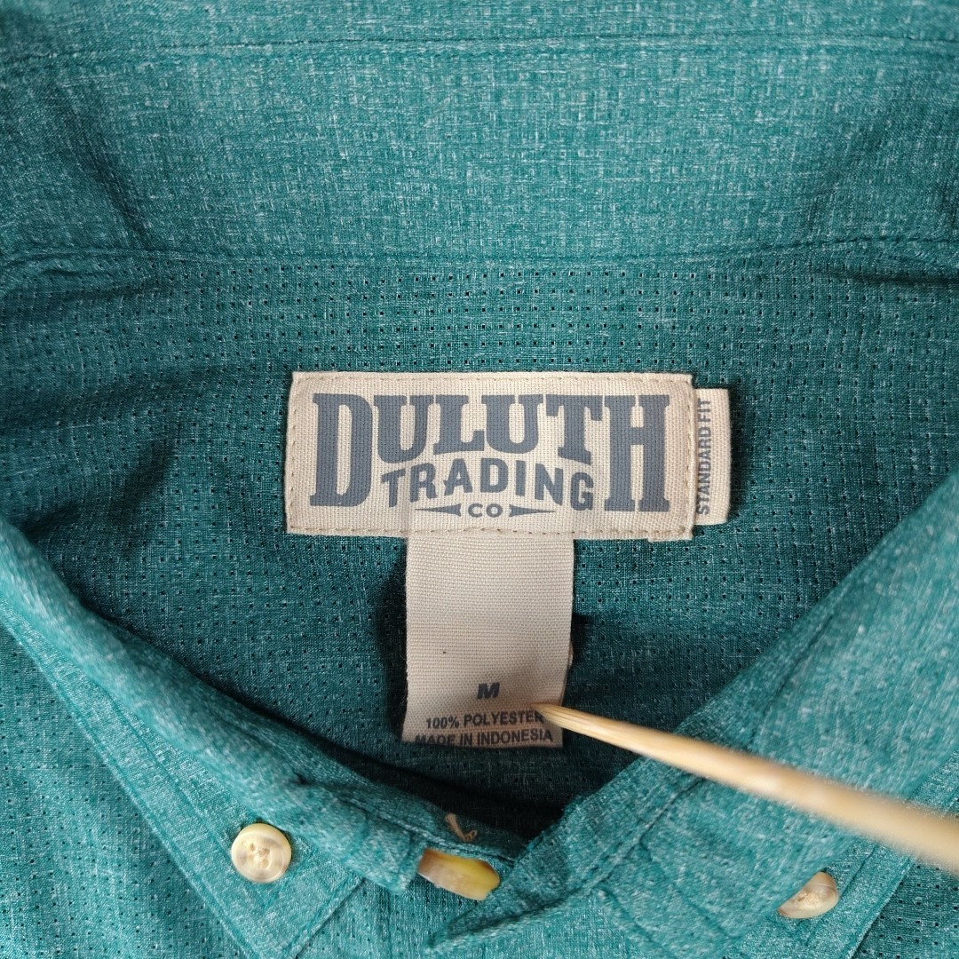 как выглядит Duluth Trading Men s M S/S Button Down Shirt Coolmax Teal Aqua EUC Lightweight фото