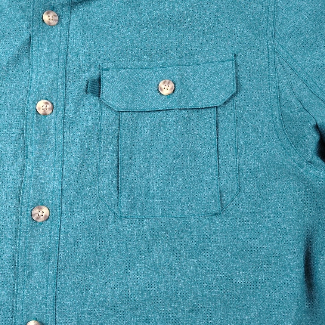 Duluth Trading Men s M S/S Button Down Shirt Coolmax Teal Aqua EUC Lightweight