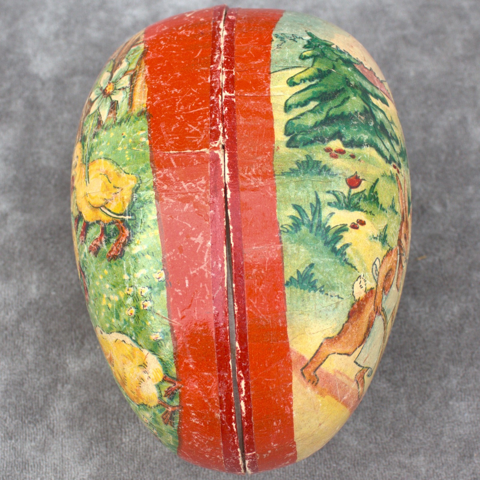 • Antique German Easter egg candy container 6.30" box ducks play music 16 cm scene