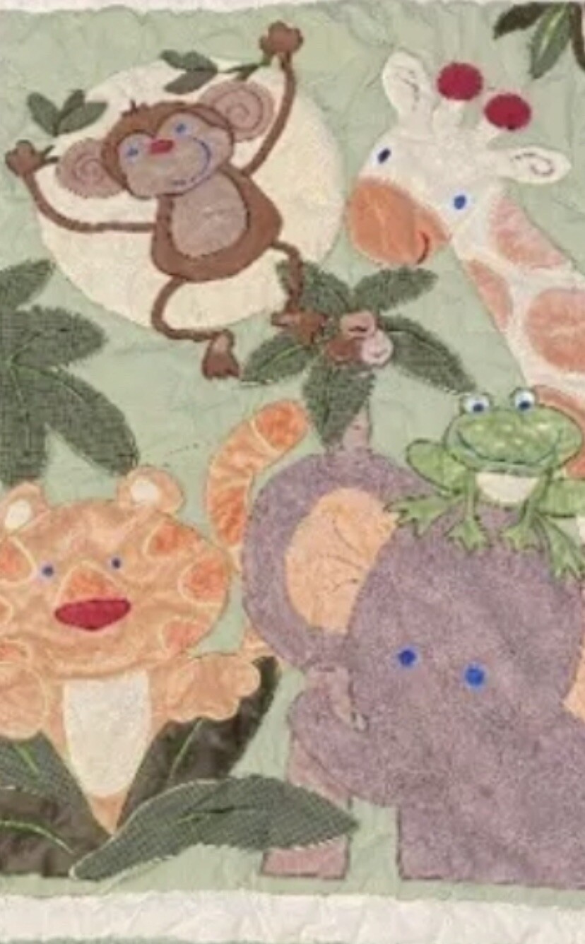 Nojo Safari Jungle Plush Green Quilt Baby Blanket Monkey Elephant Tiger Giraffe