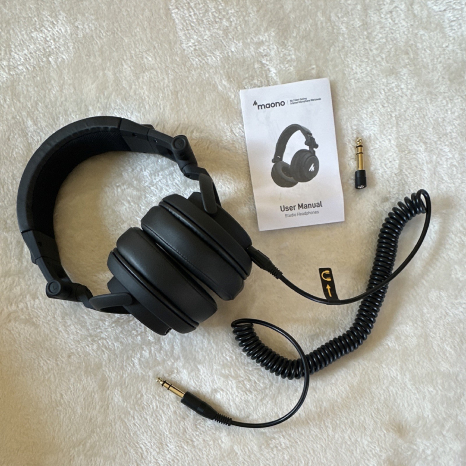 как выглядит Maono AU-MH601 Studio Headphones Black Foldable DJ 3.5mm/6.35mm Jacks фото