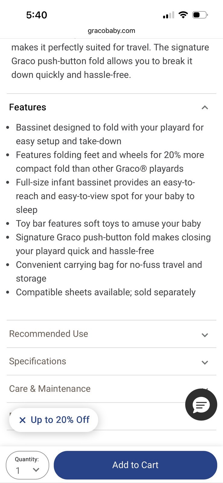 Graco Pack n Play On The Go Playard, Kaden BRAND NEW