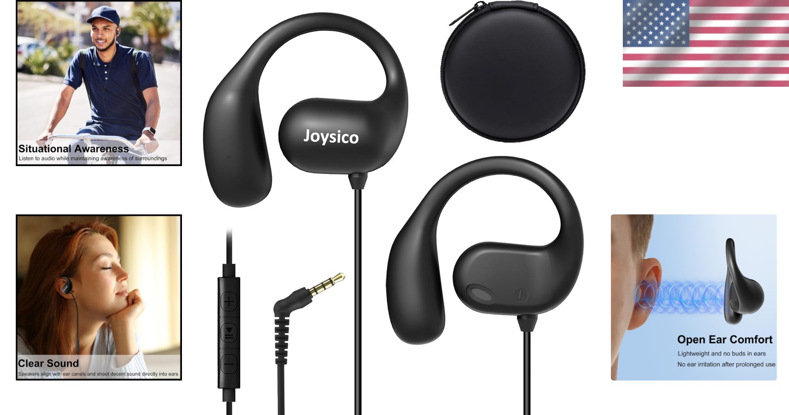 Comfortable Open Ear Earphones with Wrap Around Hooks Convenient Carrying Case