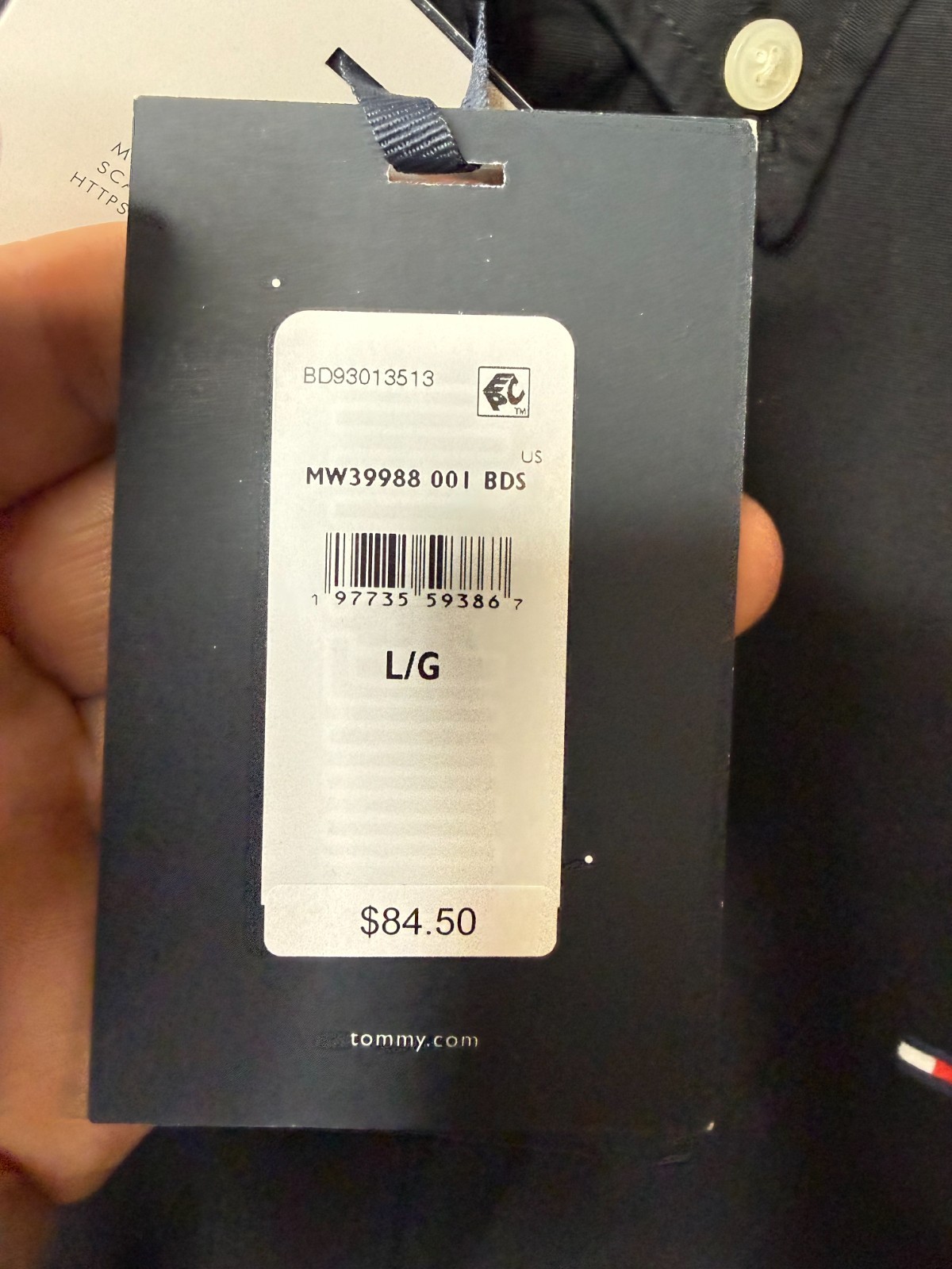 как выглядит NWT Tommy Hilfiger Mens Black Regular Fit Button Down Flex Poplin Shirt Size L фото
