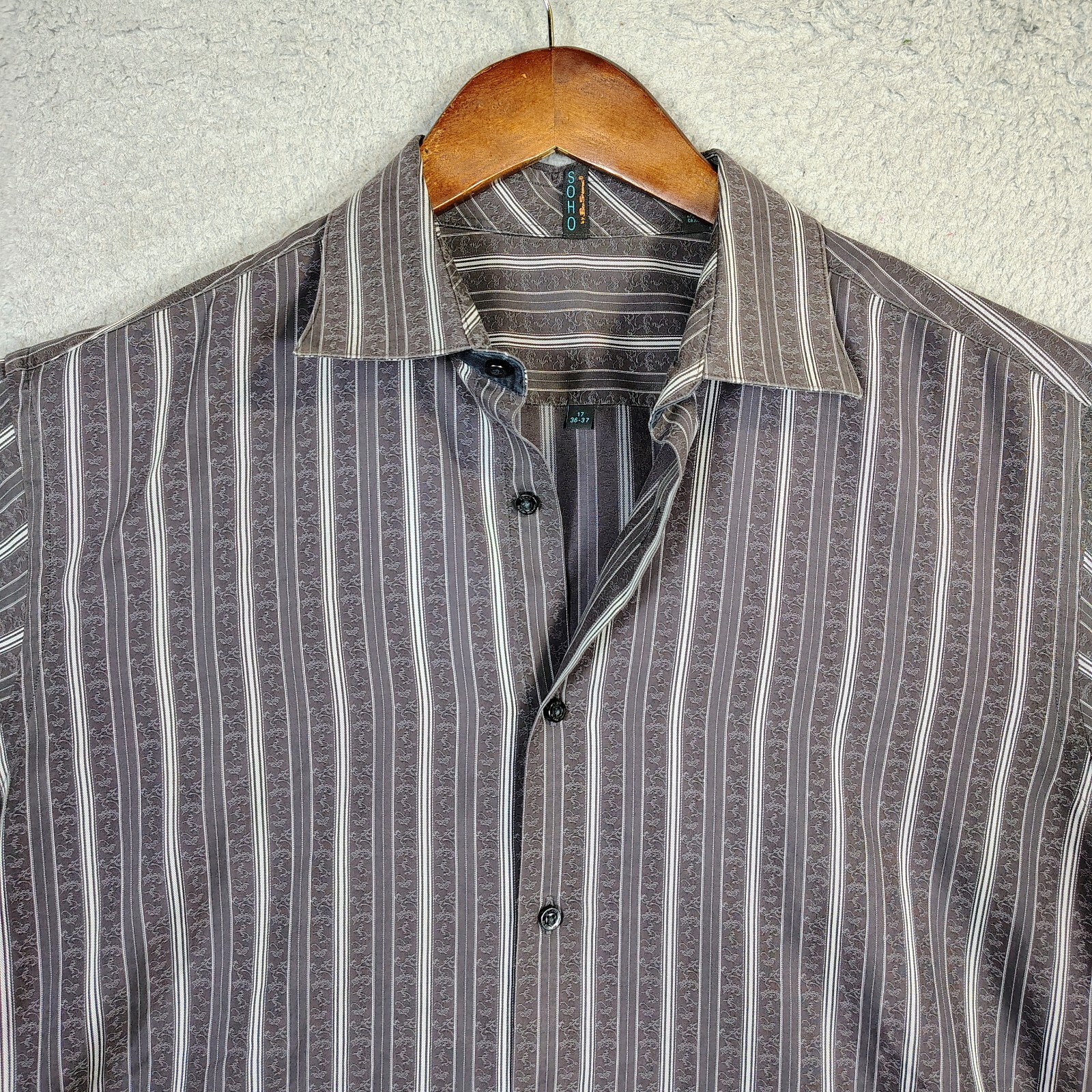 как выглядит Ben Sherman Soho Dress Shirt Men 17 36-37 Gray Striped Long Sleeve Career Casual фото
