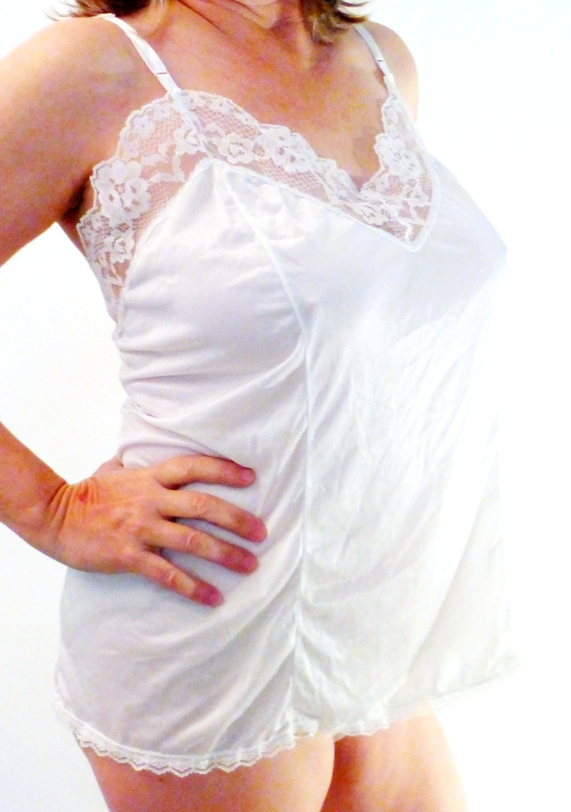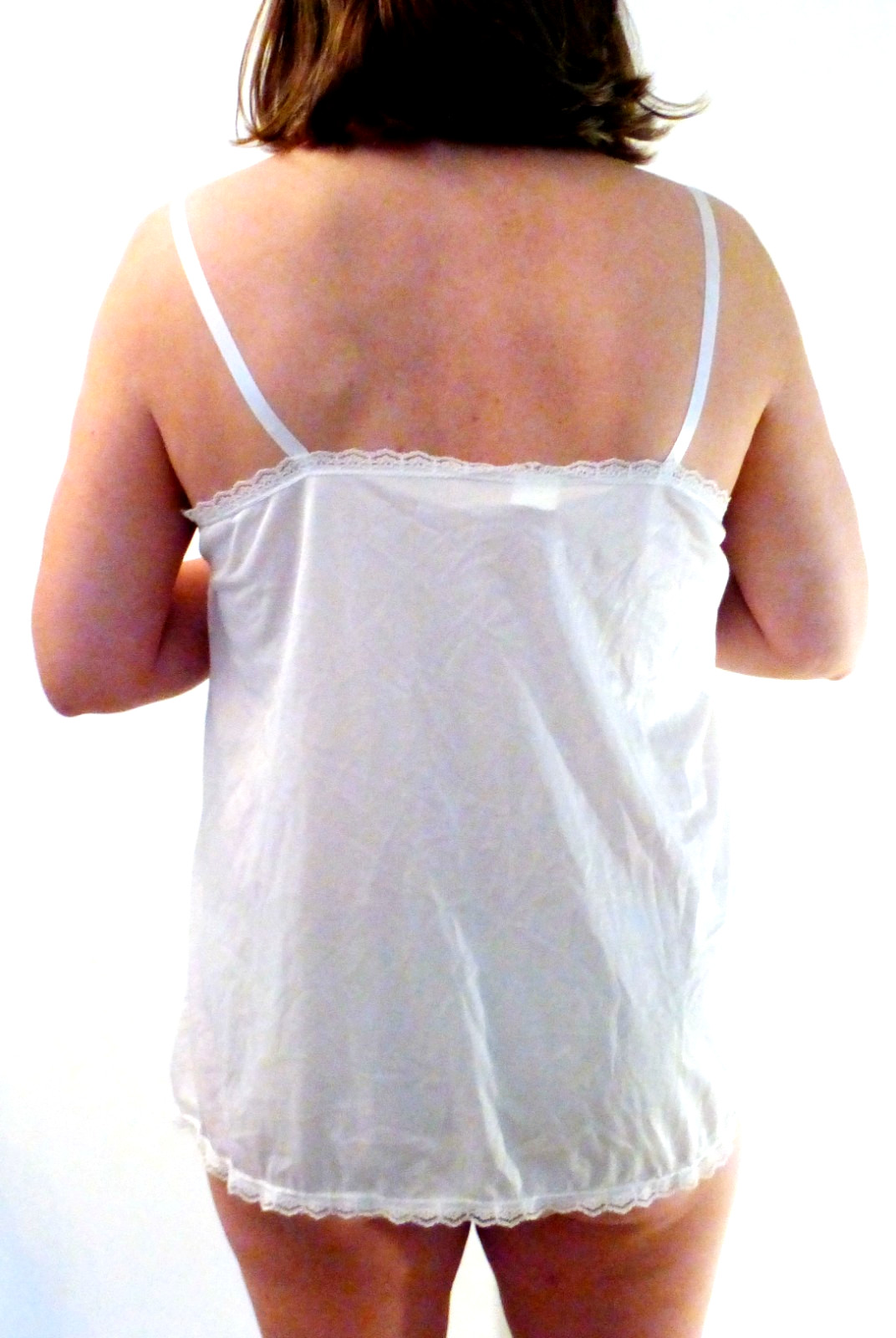 как выглядит DREAMY SOPRE VINTAGE ELEGANT VINTAGE WHITE NYLON LACY CAMISOLE 26/28 EVC фото