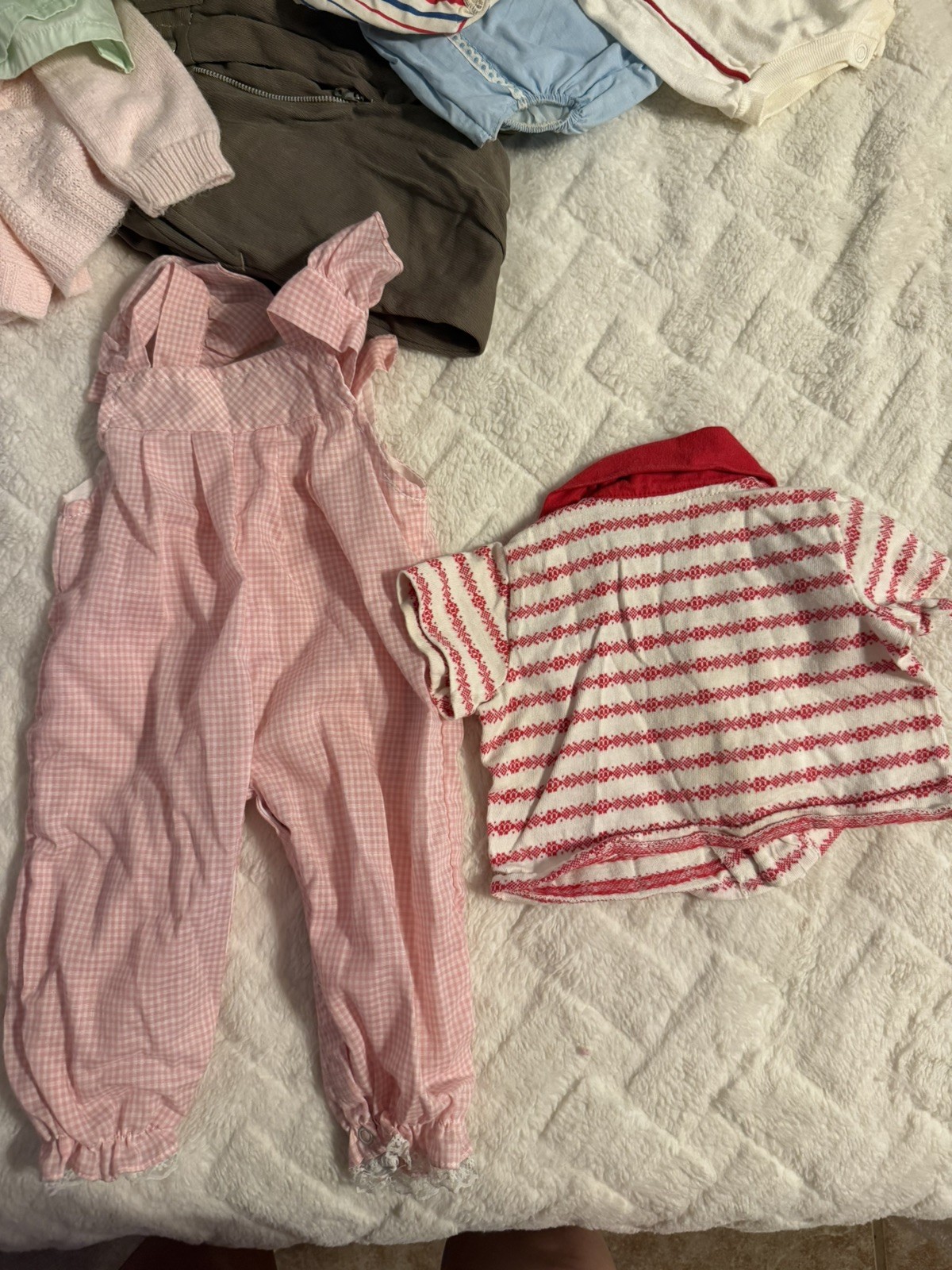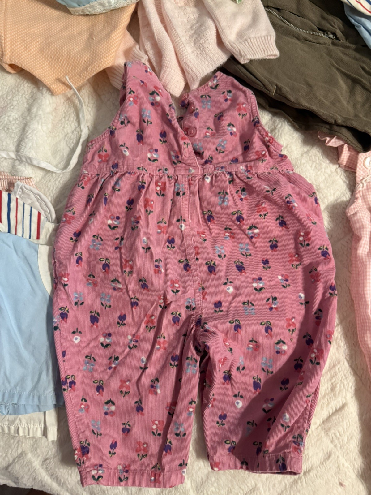 Vintage Baby Toddler Clothing Lot 60 s-90 s Pink Floral Overalls