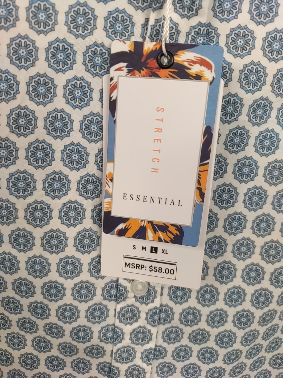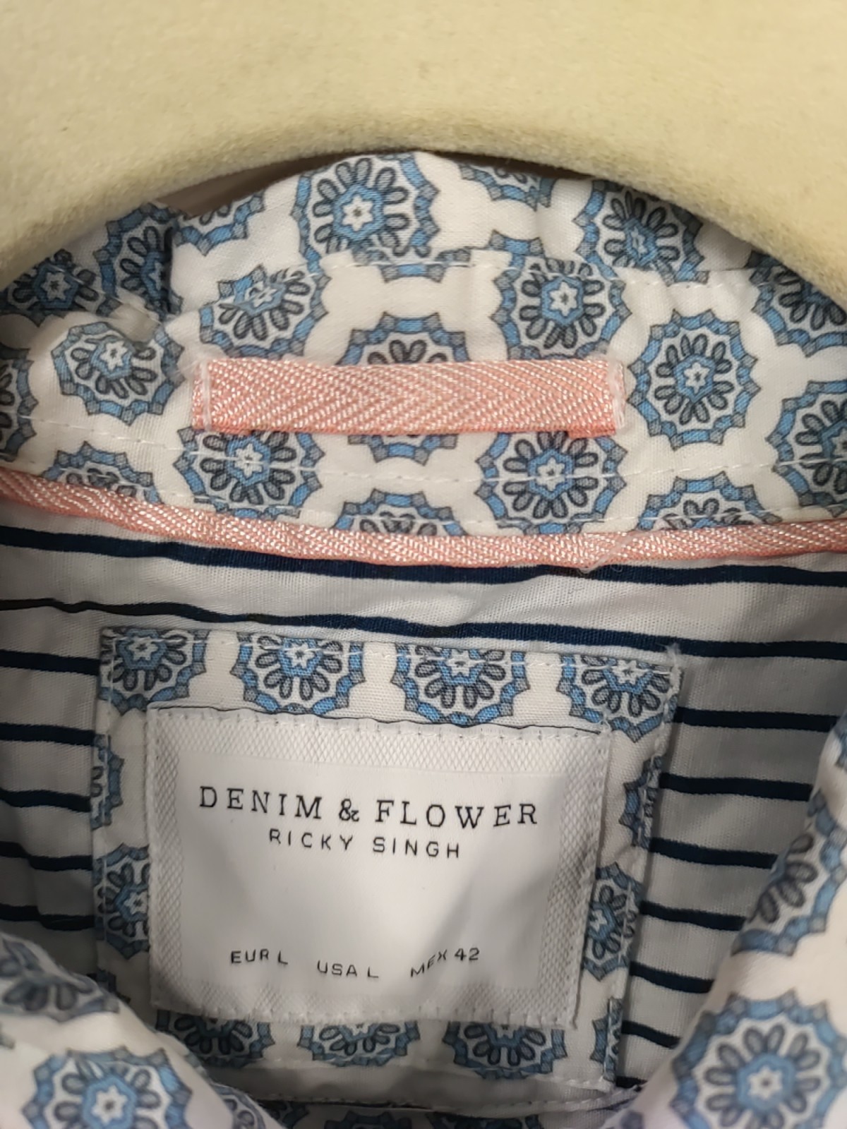 denim and flower ricky singh white Blue Geometric Stretch Short Sleeve Shirt L