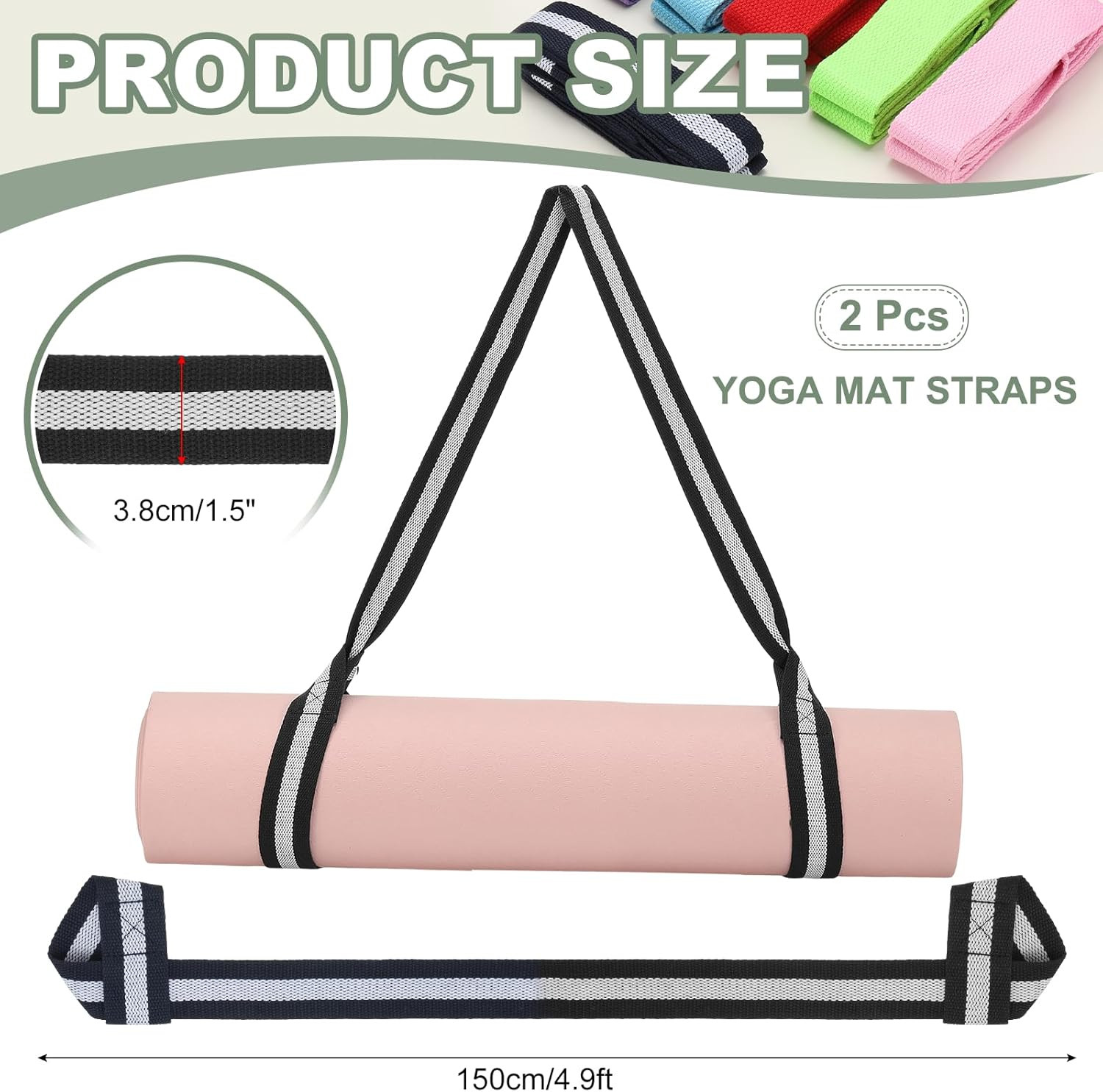 Yoga Mat Straps for Carrying, Adjustable Exercise Mat Sling Holder Multi Purpose