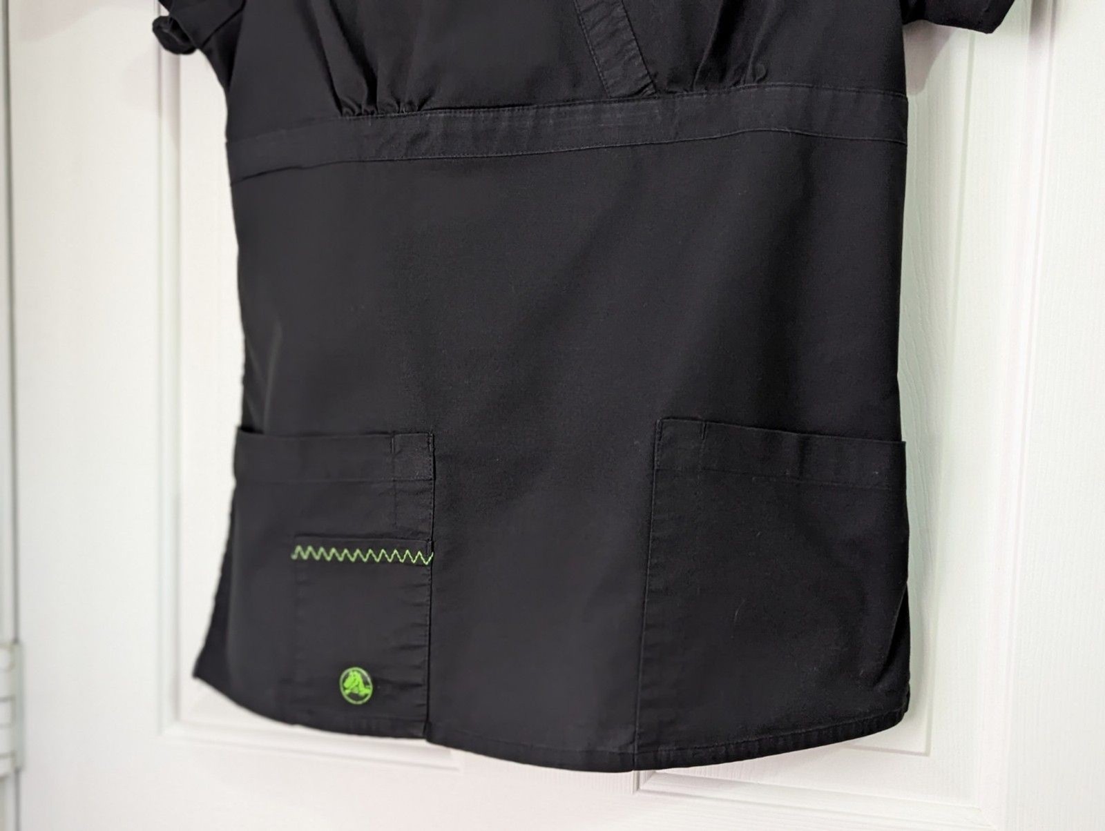 как выглядит Crocs Scrub Top Womens Small Pockets Black Medical Nurse Logo фото