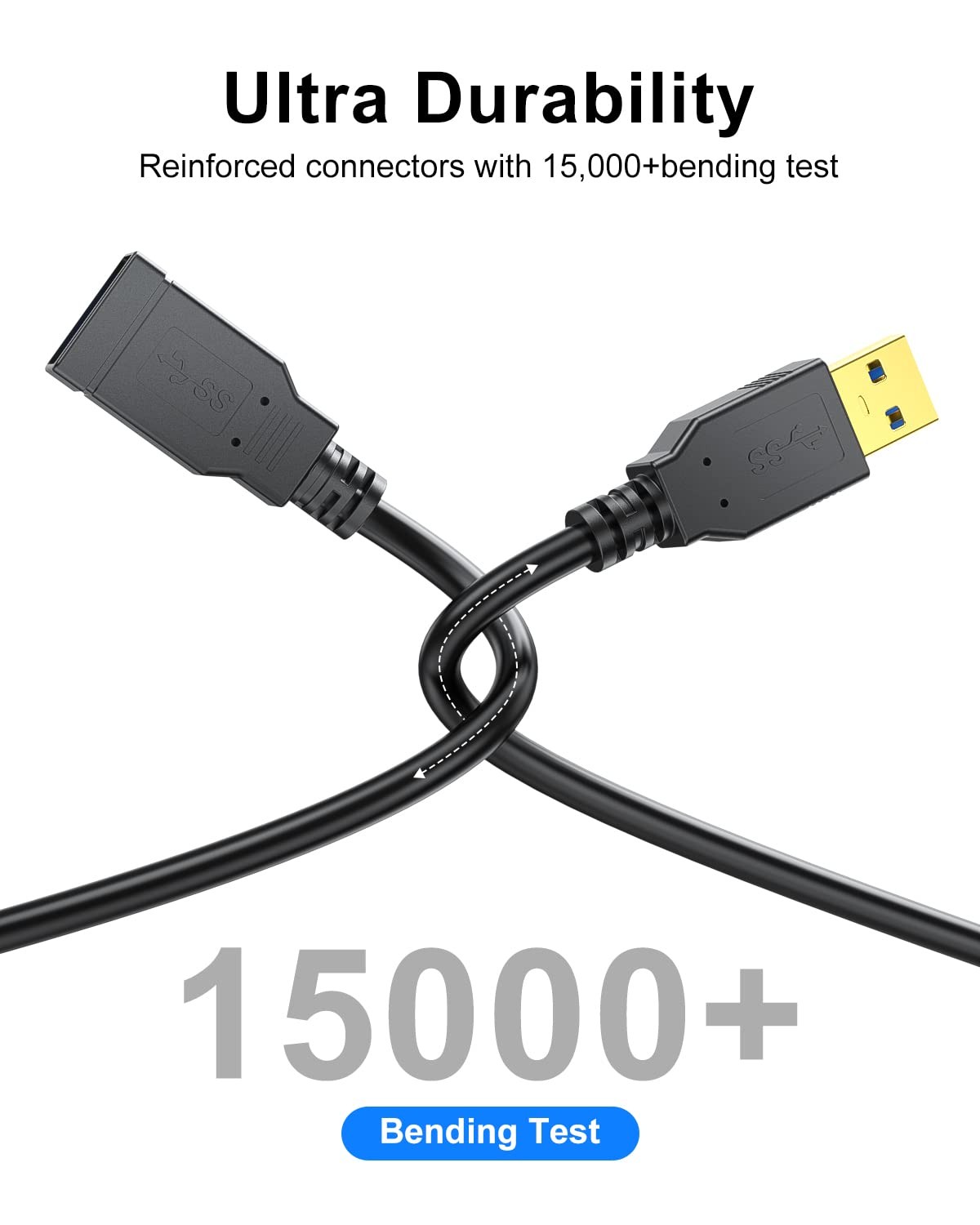 NC XQIN Short USB 3.0 Extension Cable 1 Feet, 1 feet, Black 1 Feet