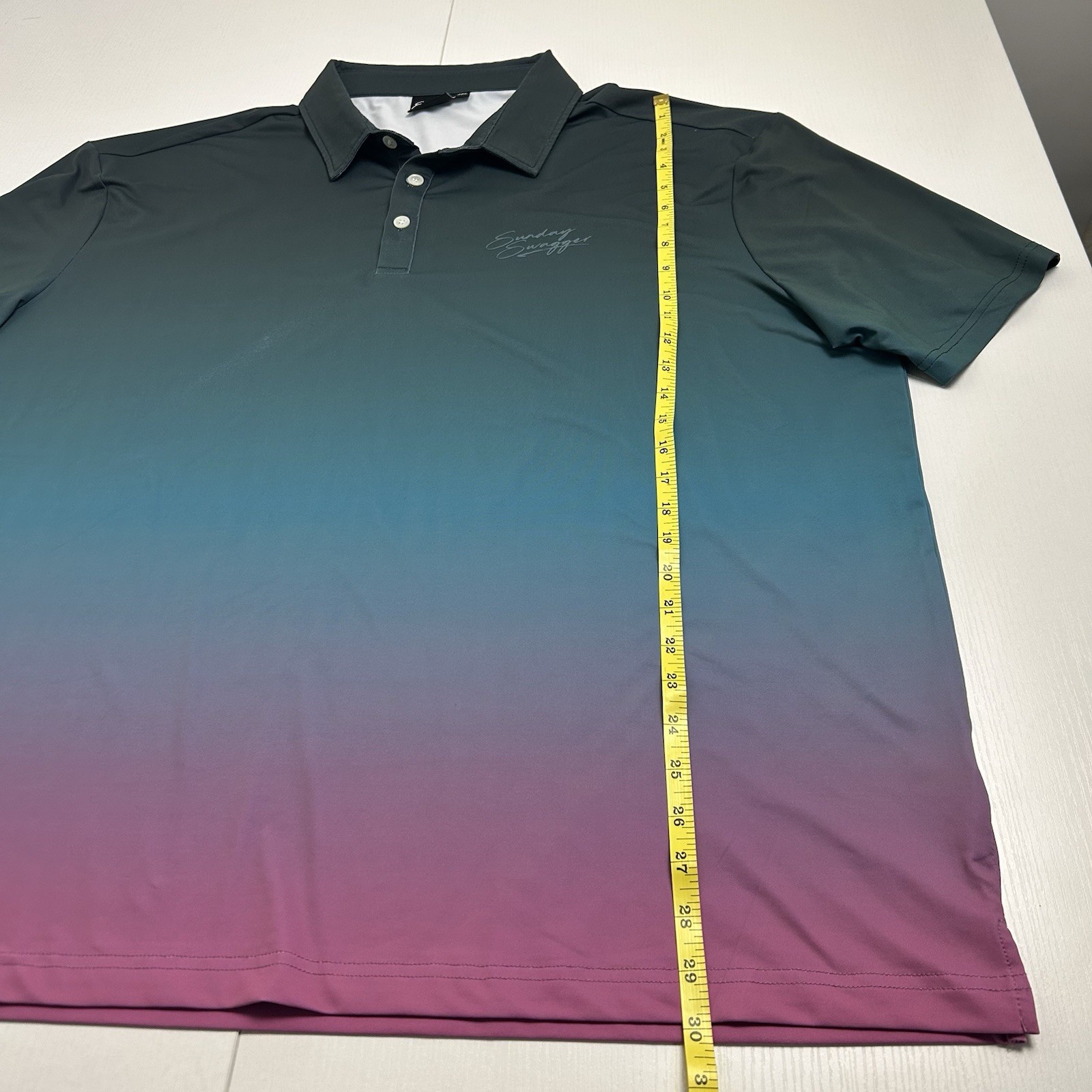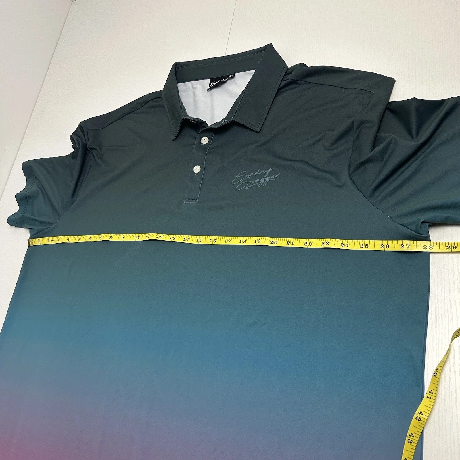 как выглядит Sunday Swagger Mens Polo Golf Shirt Sz 3XL Sunset Gradient Green Purple фото