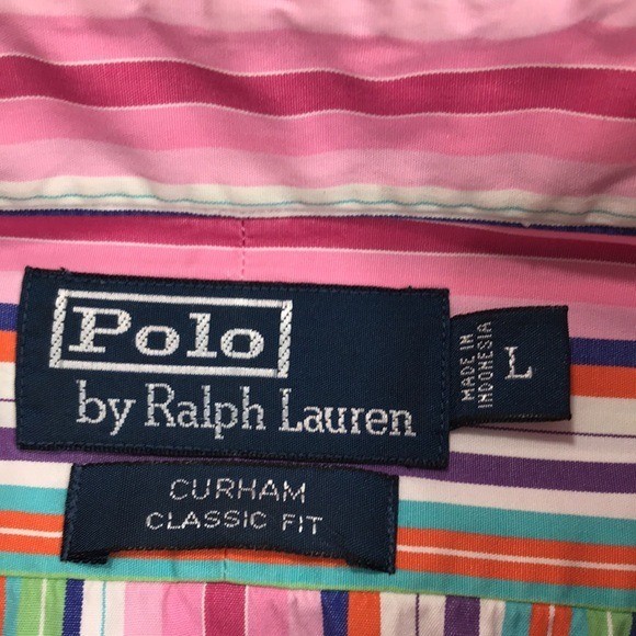 как выглядит Polo Ralph Lauren Curhan Classic Fit Pink Striped Mens Dress Shirt Size L фото