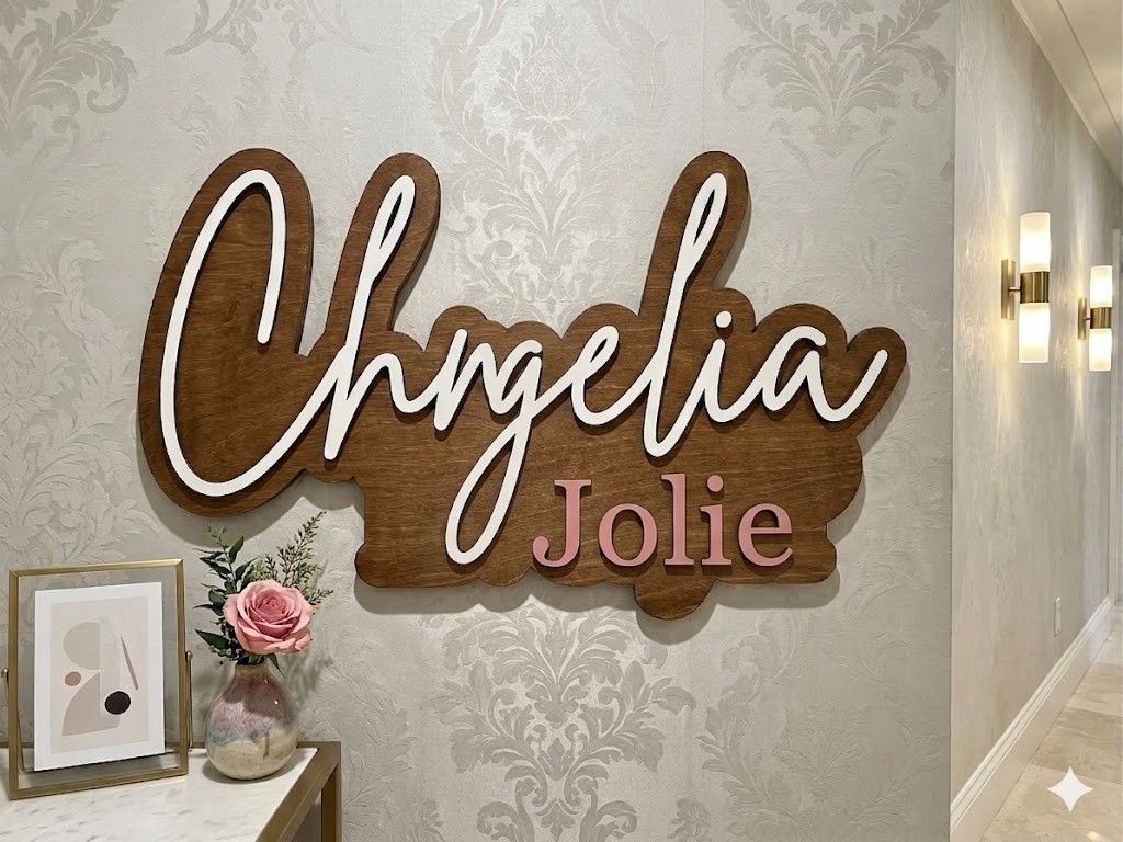 Custom 3D Wood Name Sign - Personalized Nursery Wall Art - Double Layer Script