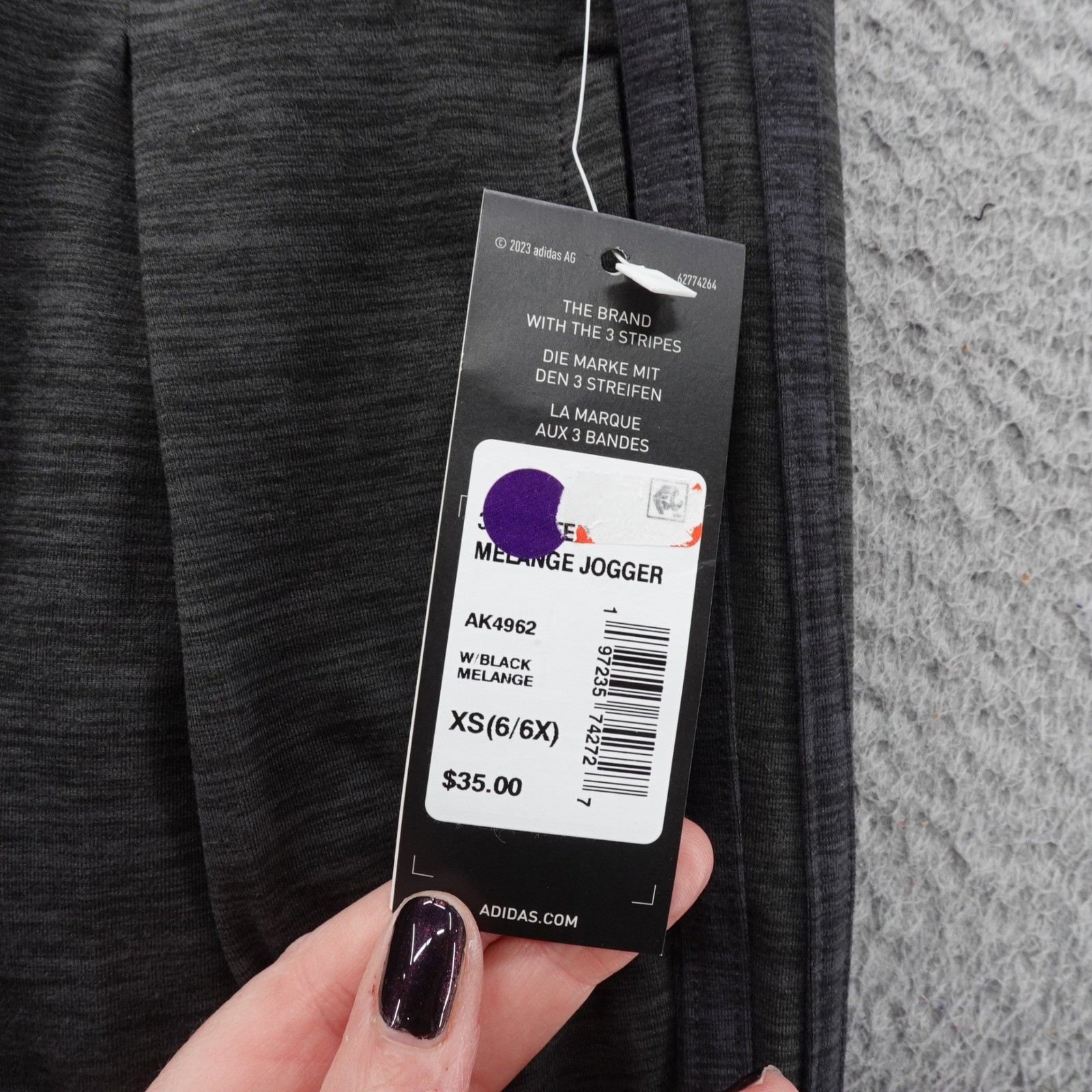 как выглядит Adidas Girls Melange Joggers Black Heathered Tapered Pants XS 6/6X NEW фото