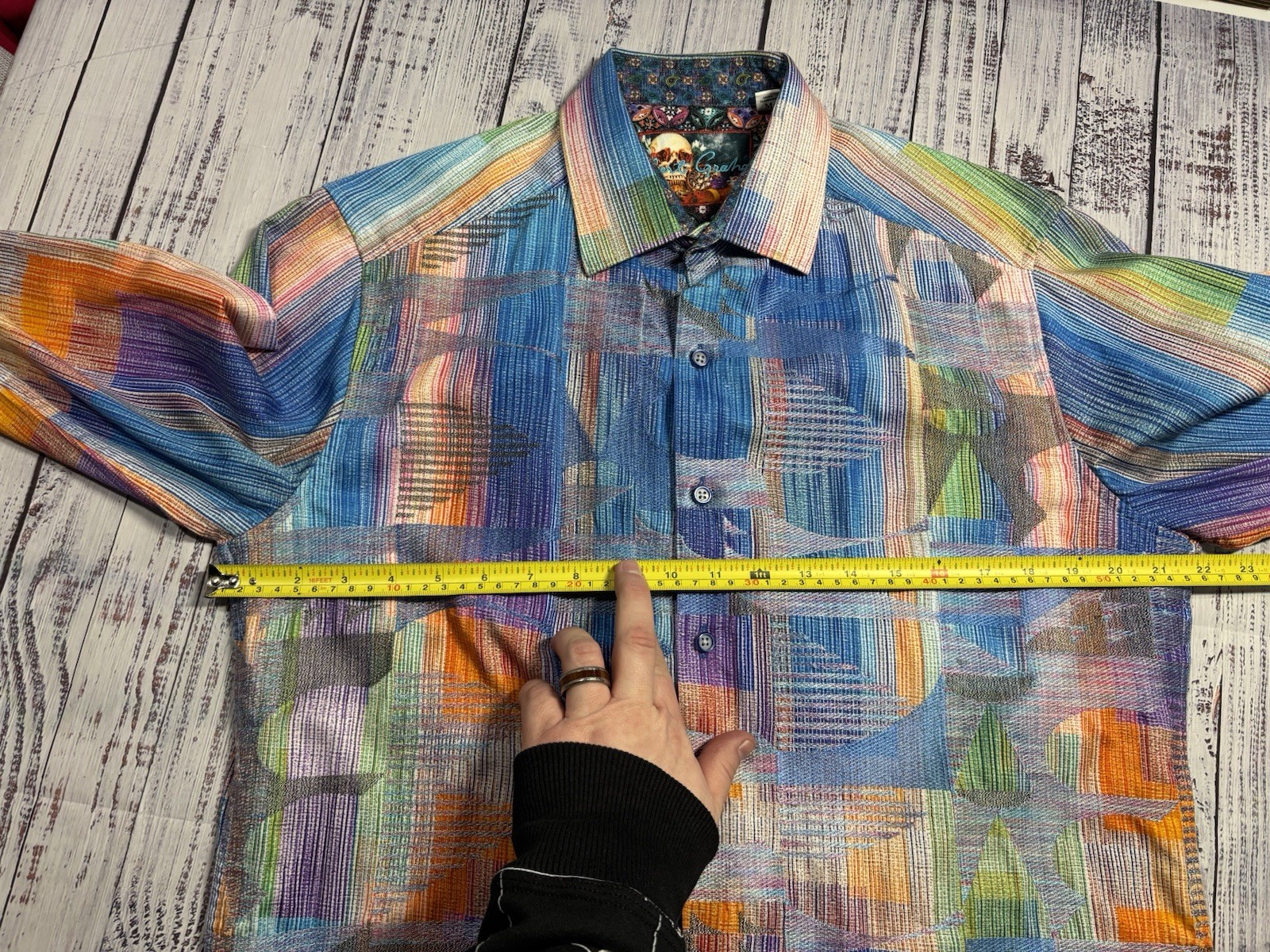 как выглядит Mens Robert Graham Shirt Sz M Button Down RARE Print 1199 фото