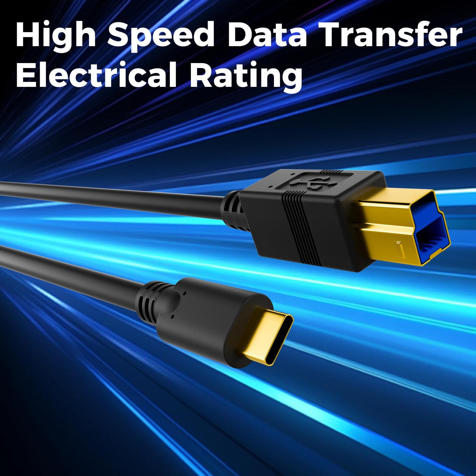 USB C to B 3.0 Cable 20FT, USB-C-Male B-Male Cable, Black