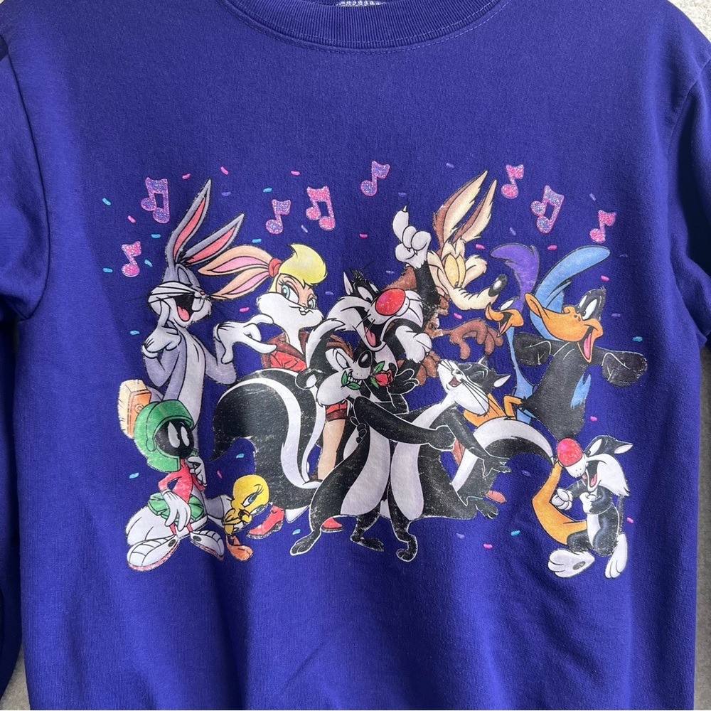 как выглядит Looney Tunes WB 1997 Vintage Rare Kids Purple Sweatshirt Music Size Large 10/12 фото