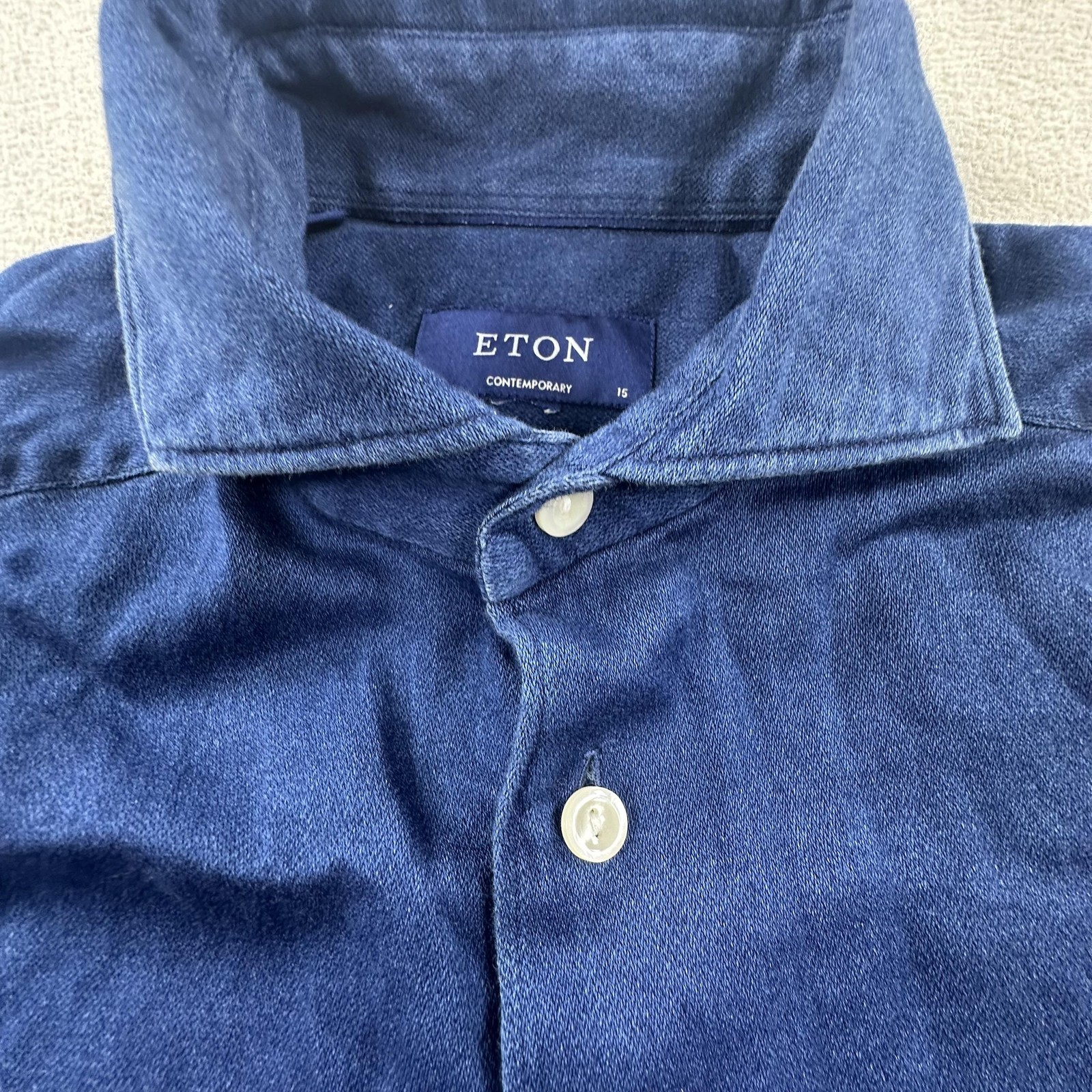 как выглядит Eton Indigo Dress Shirt Mens 15 32/33 Blue Contemporary Long Sleeve Button Up фото