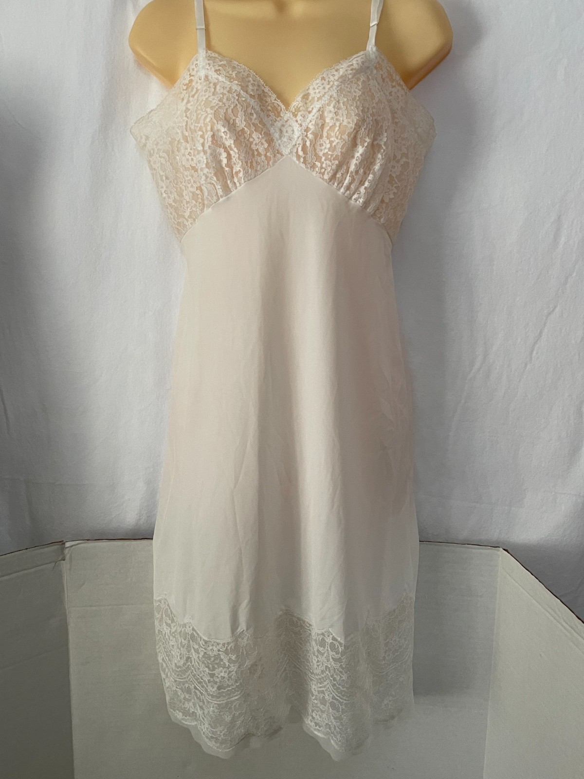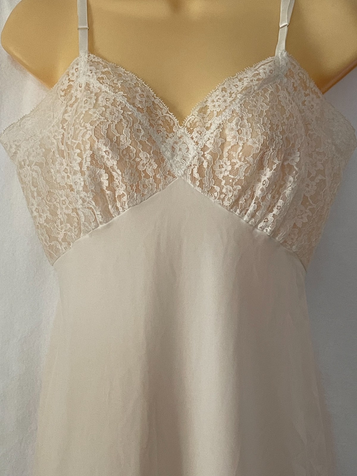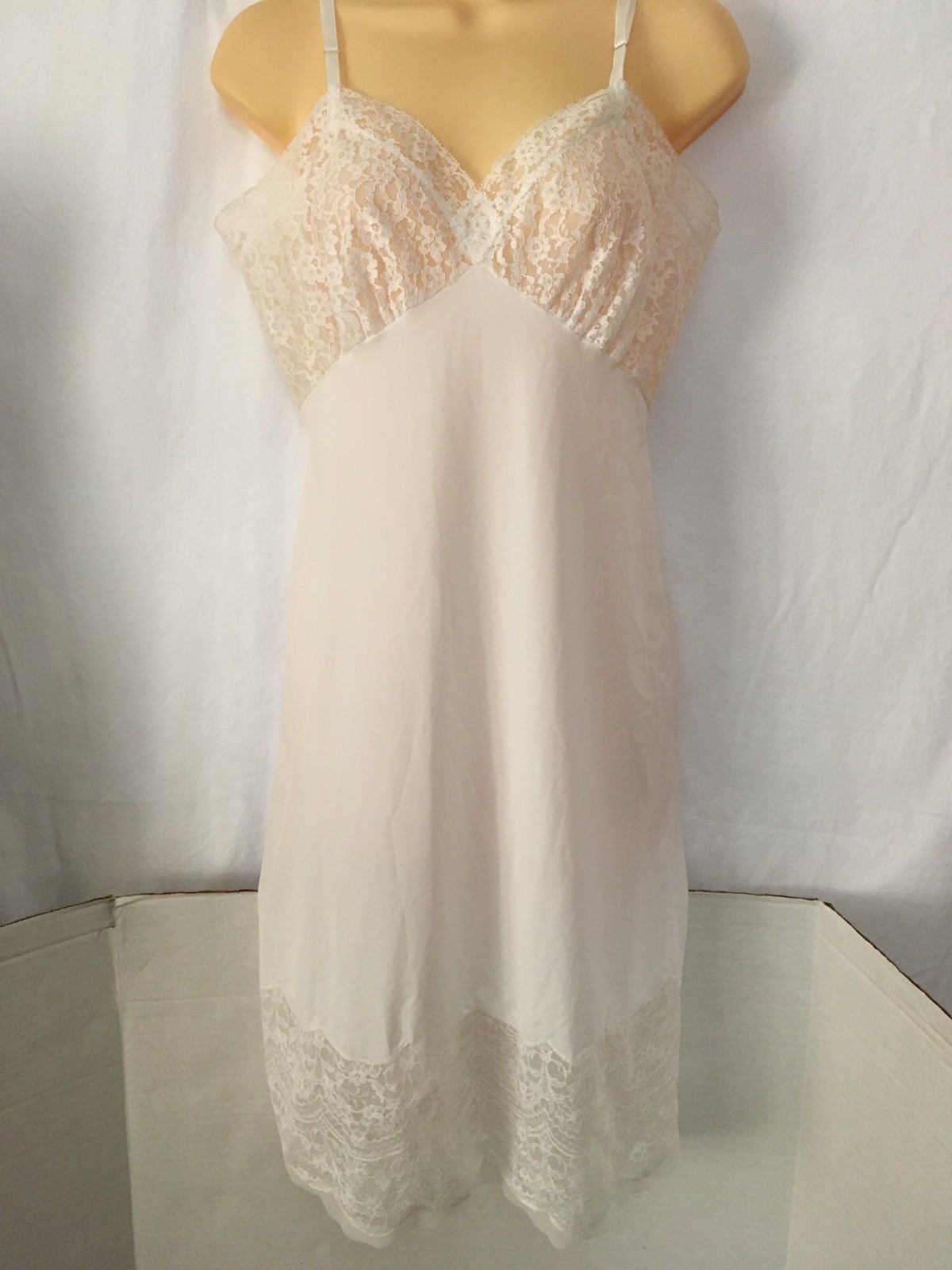как выглядит Vtg Van Raalte Suavette FLORAL LACY BUST Full Slip Dress Nylon Wide Lace 34 фото