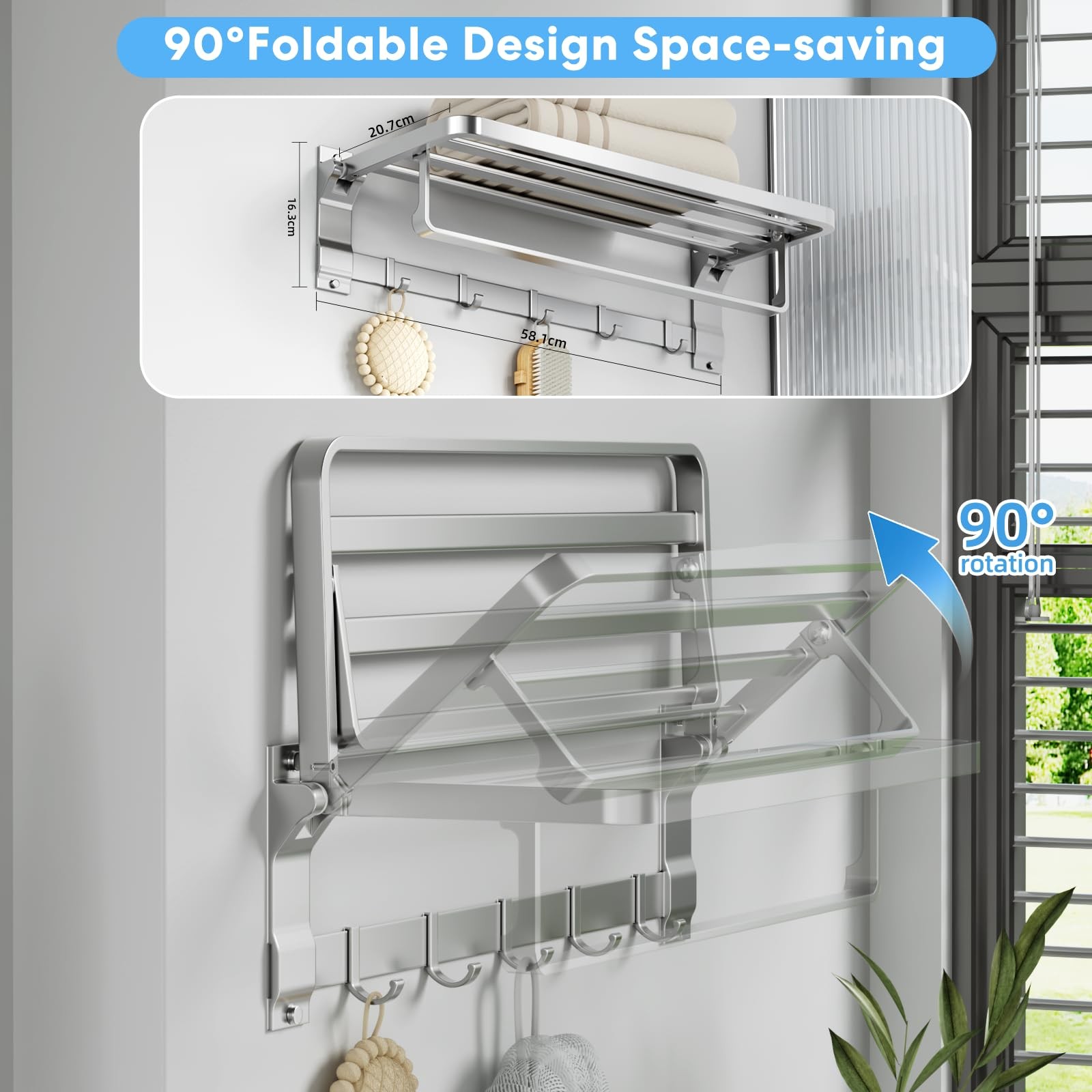 90 Foldable Towel Racks for Bathroom Wall Mounted with Rustproof Aluminum To...