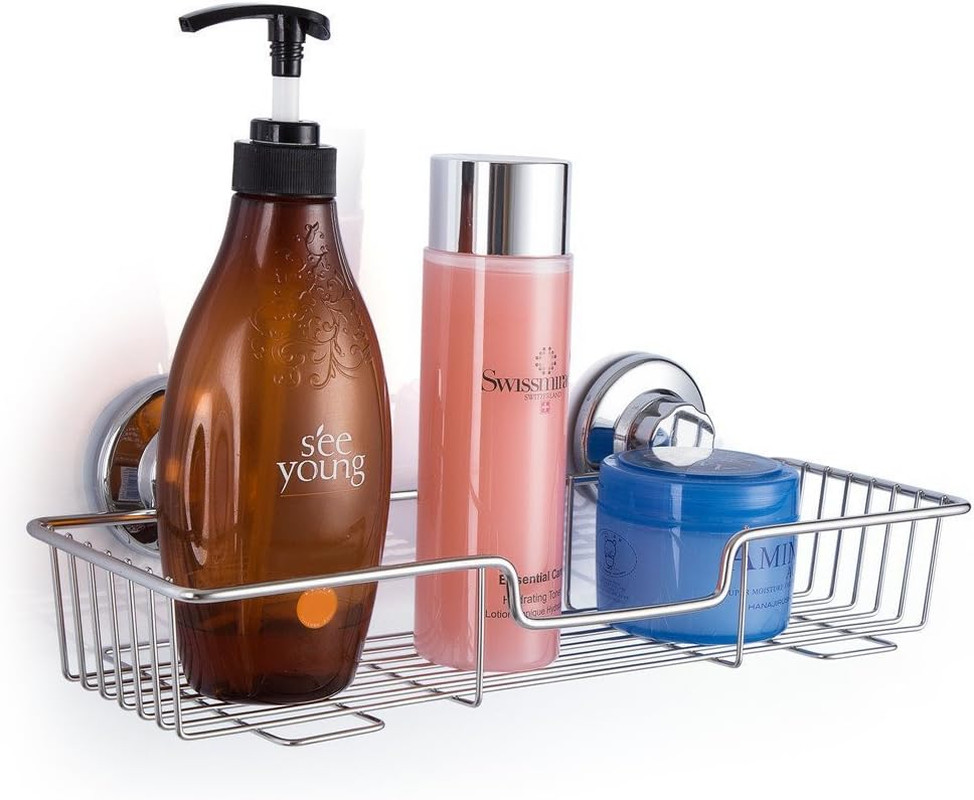 Strong Suction Cup Shower Caddy Bath Shelf Storage with 4 Side Hooks, Combo Orga