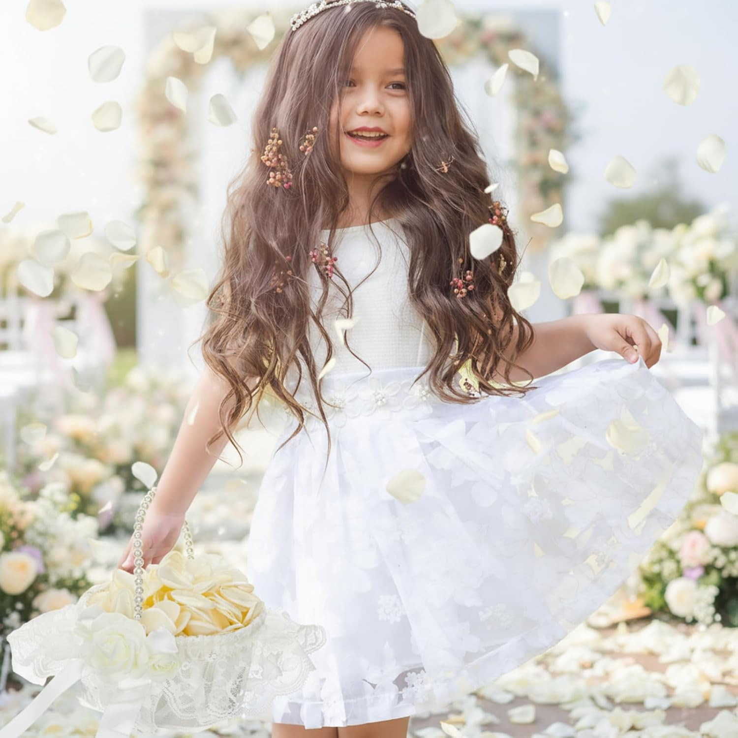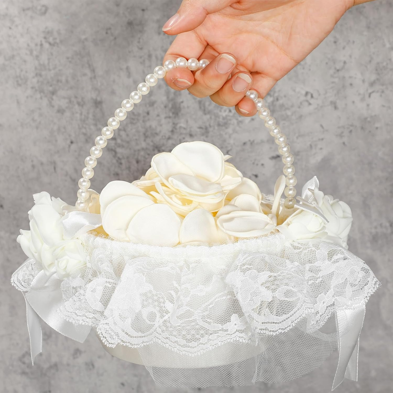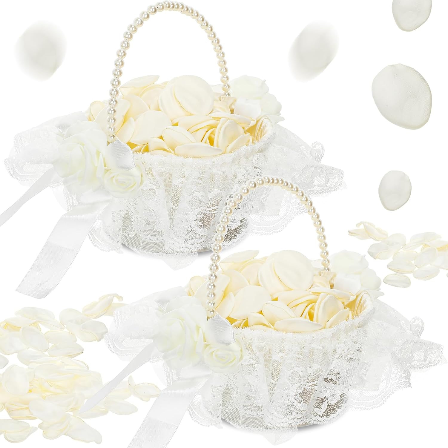 2 Packs Wedding Flower Girl Baskets with 300 Pcs Silk Petals, Pearl Handle and R