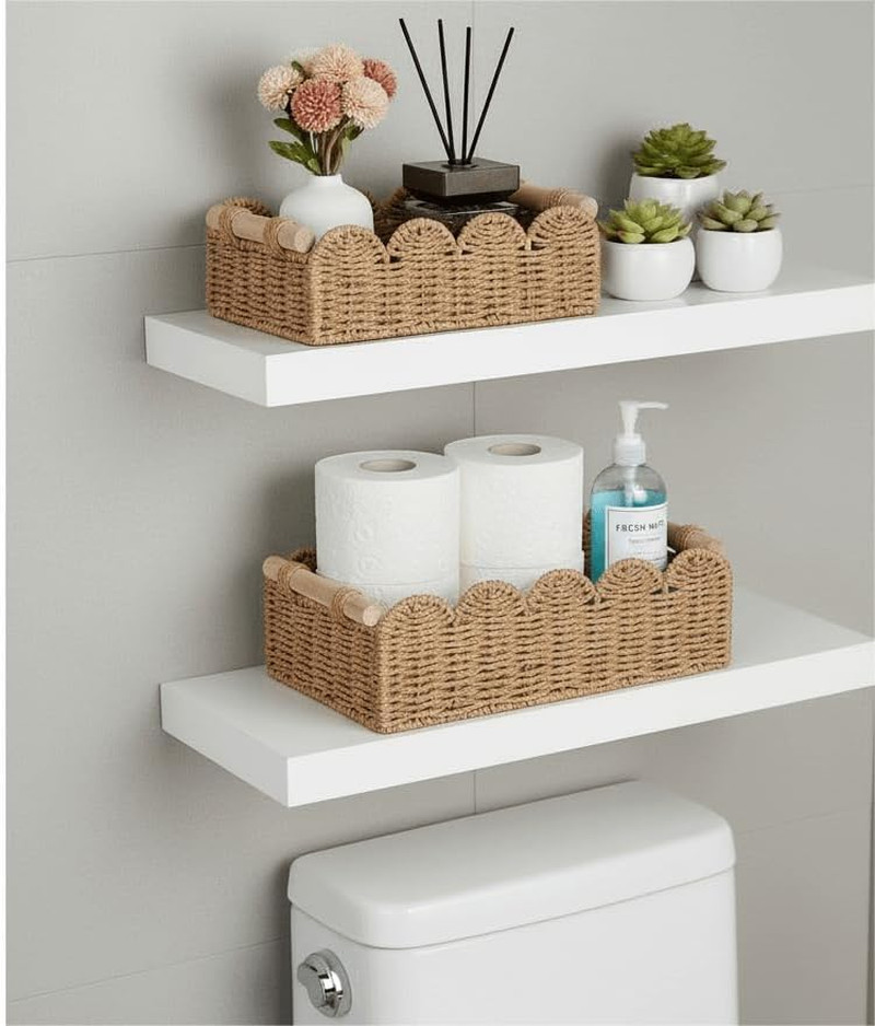 Toilet Paper Storage Organizer Basket, Scalloped Decorative Baskets for over Toi