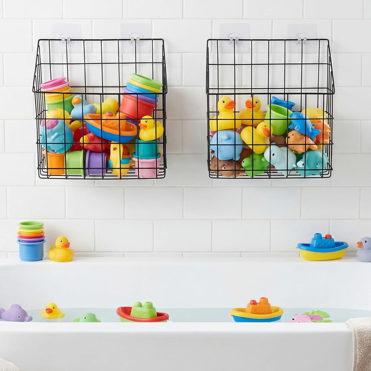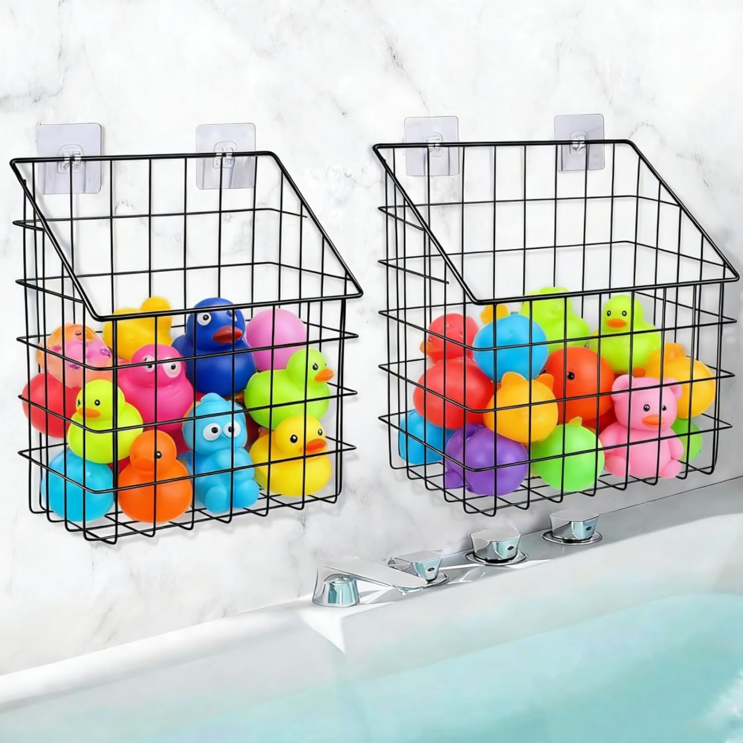2 Pack Bath Tub Toy Storage Organizer Basket, Rustproof Black Iron Holder with H