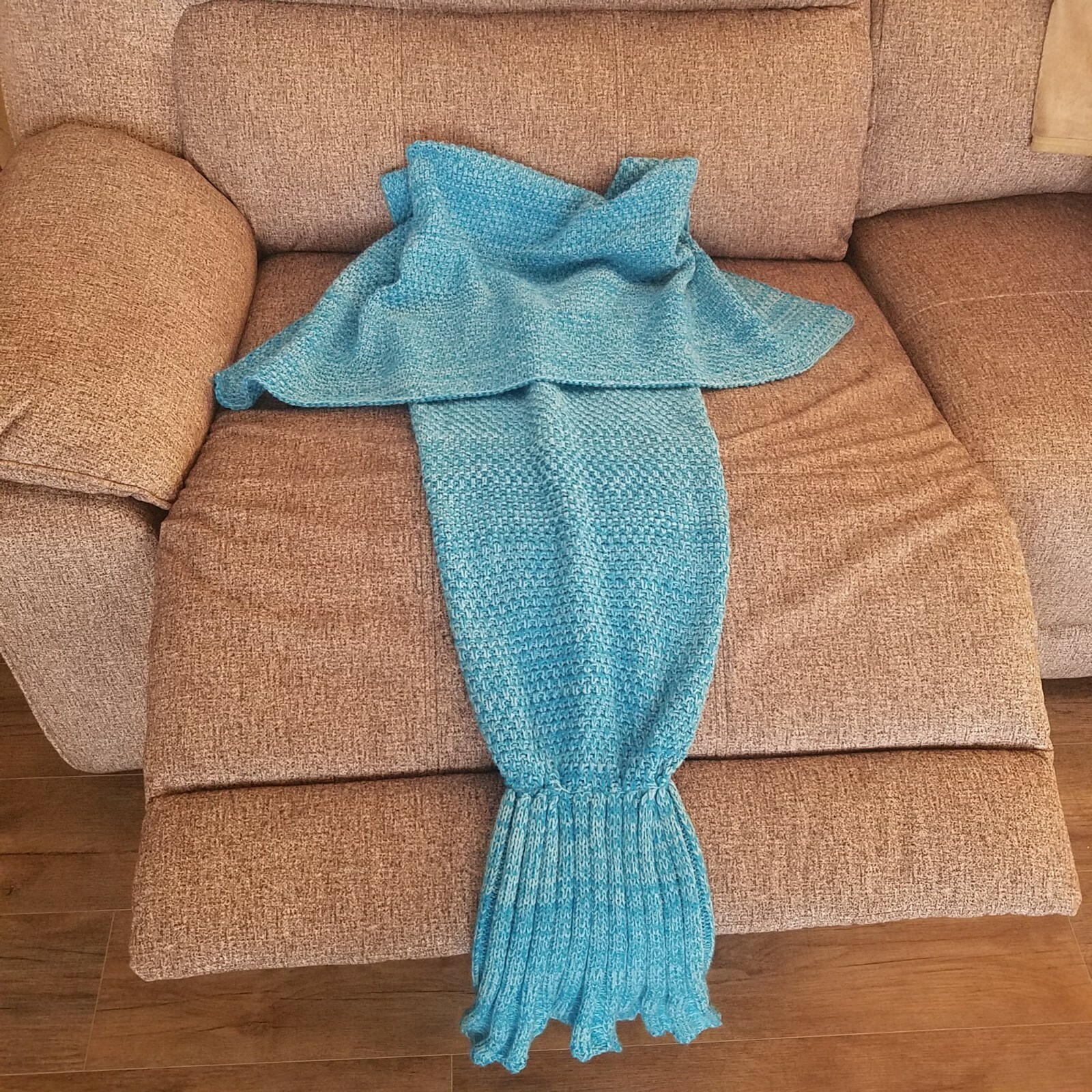 Mermaid Tail Knit Crochet Cozy Blanket Adult Child Girls Blue Teal