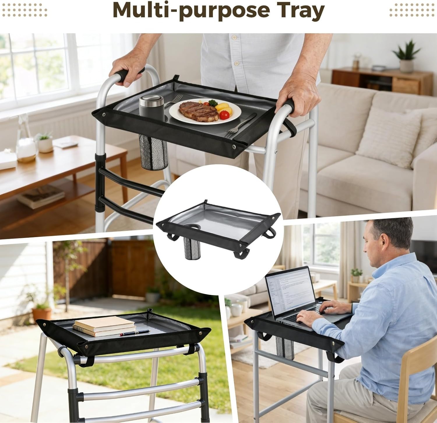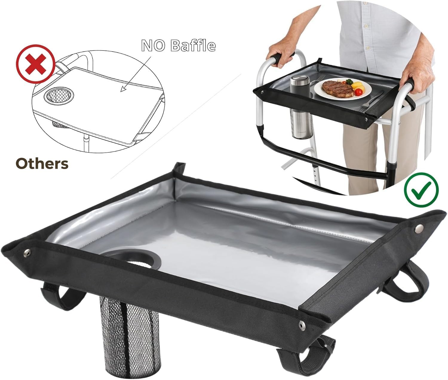 Walker Tray for Folding Walker Detachable Cloth Table with Cup Holder Waterproof