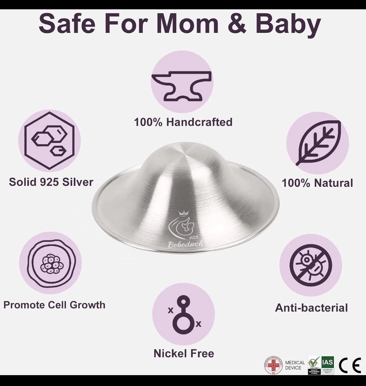 Boboduck the Original Silver Nursing Cups - Nipple Shields for Nursing Newborn,