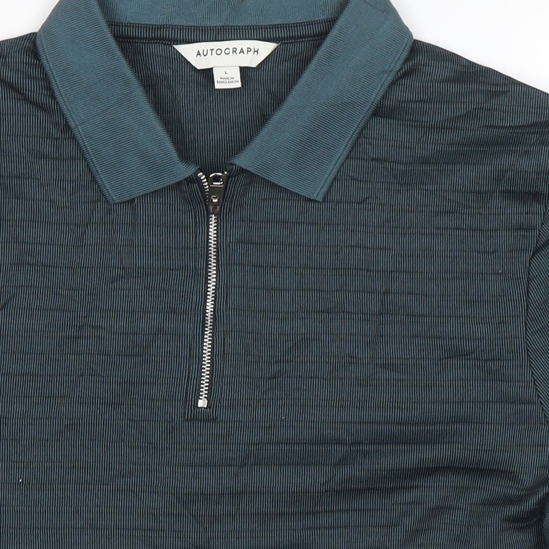 Marks and Spencer Men s Green 1/4 Zip Polo Shirt Size L