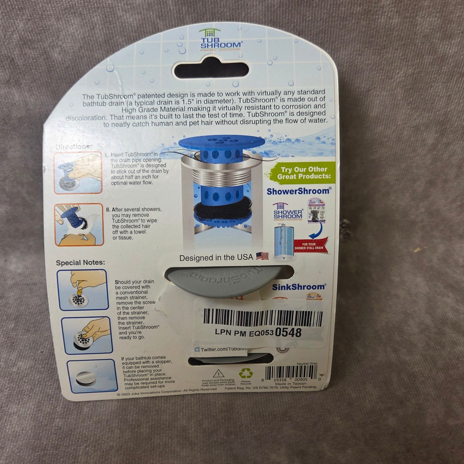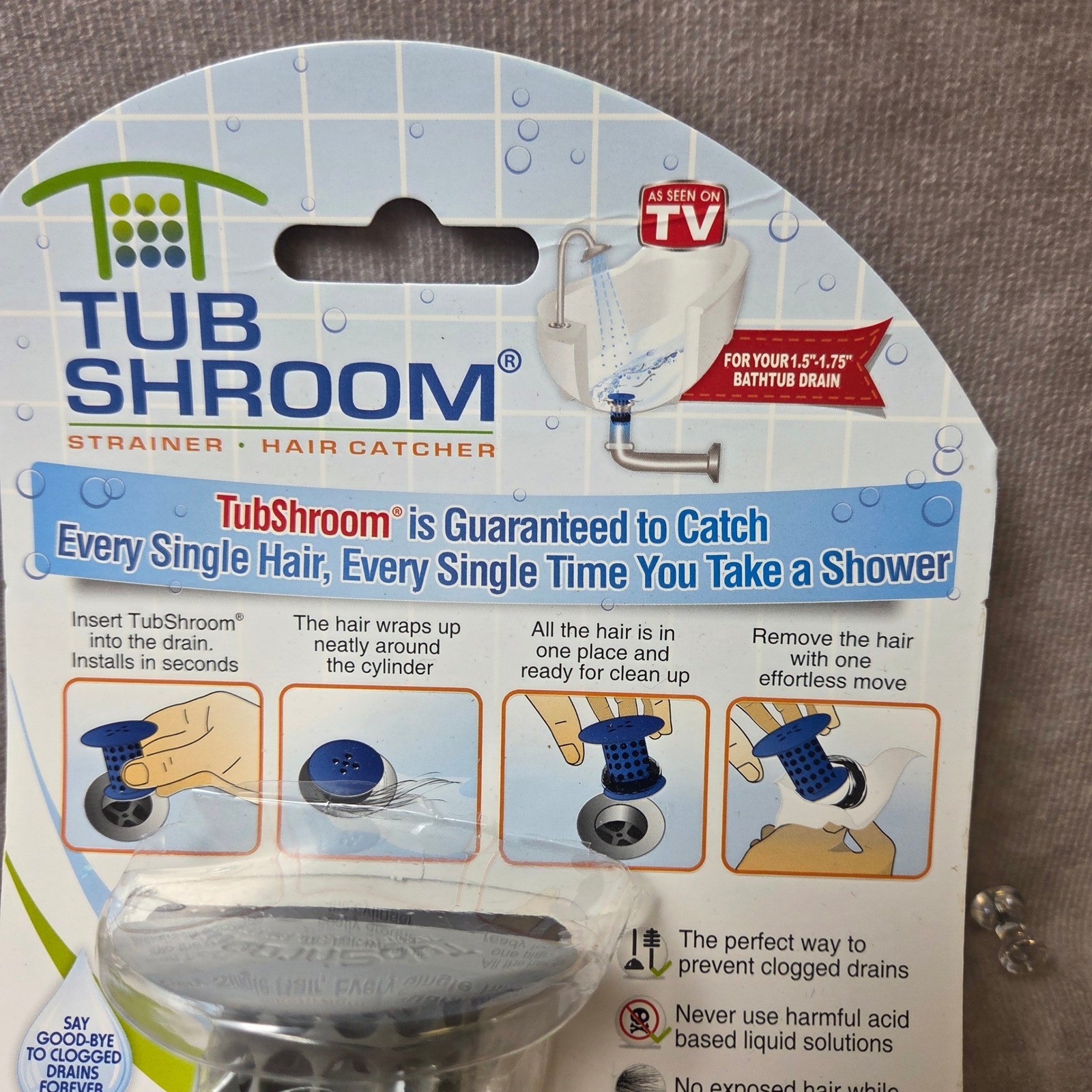 как выглядит TubShroom Revolutionary Bathtub Strainer Hair Catcher Neutral Gray 1.5-1.75 Inch фото