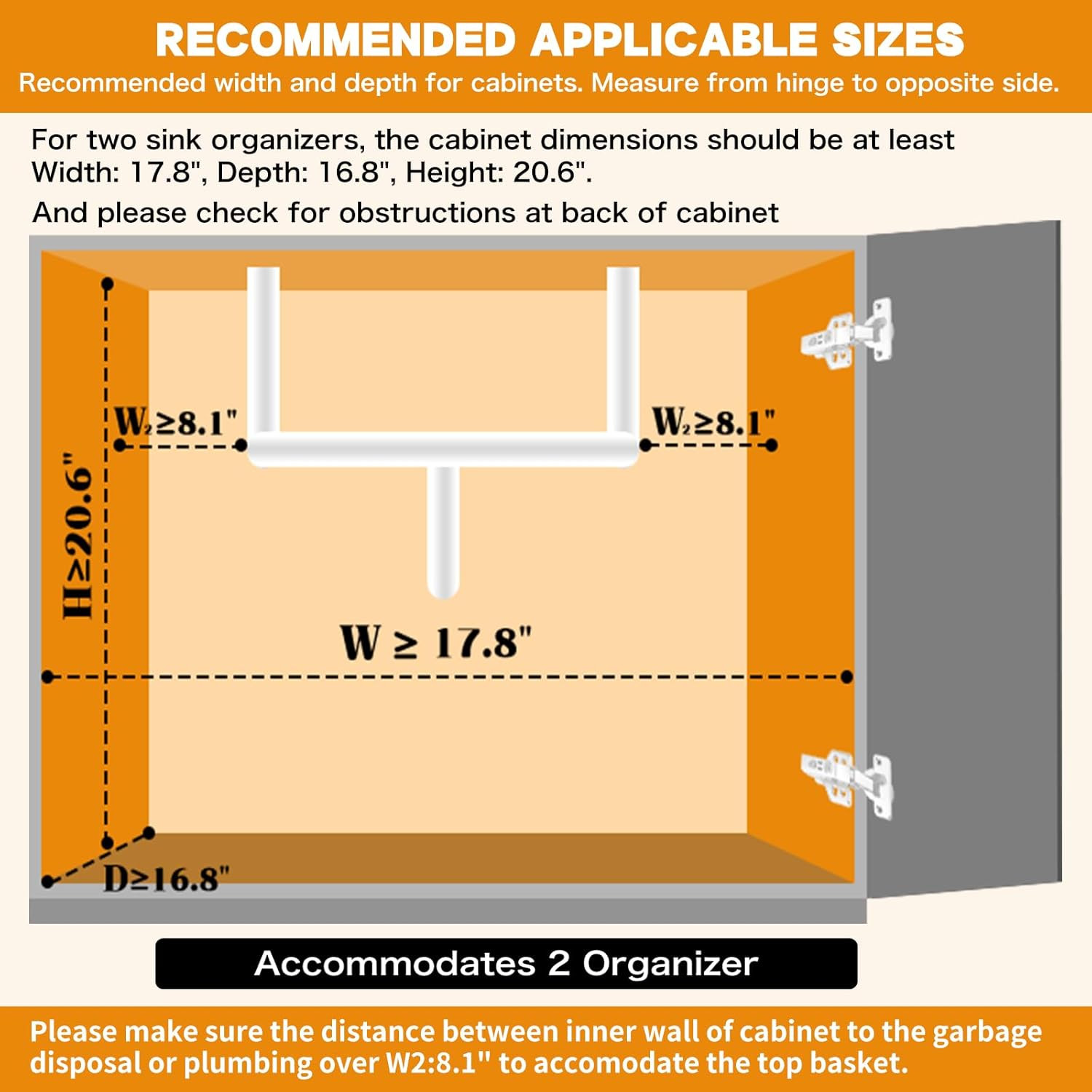 Under Sink Organizer, 2 Tier under Sink Organizers and Storage, Adjustable Heigh