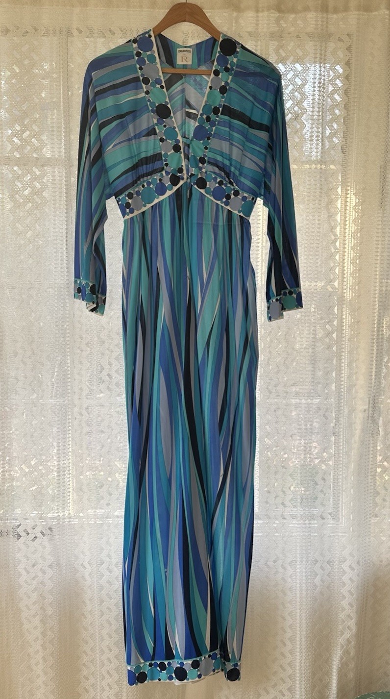 как выглядит Vintage 1960s Emilio Pucci Blue Maxi Dress Beach Coverup Size M Made In Italy фото