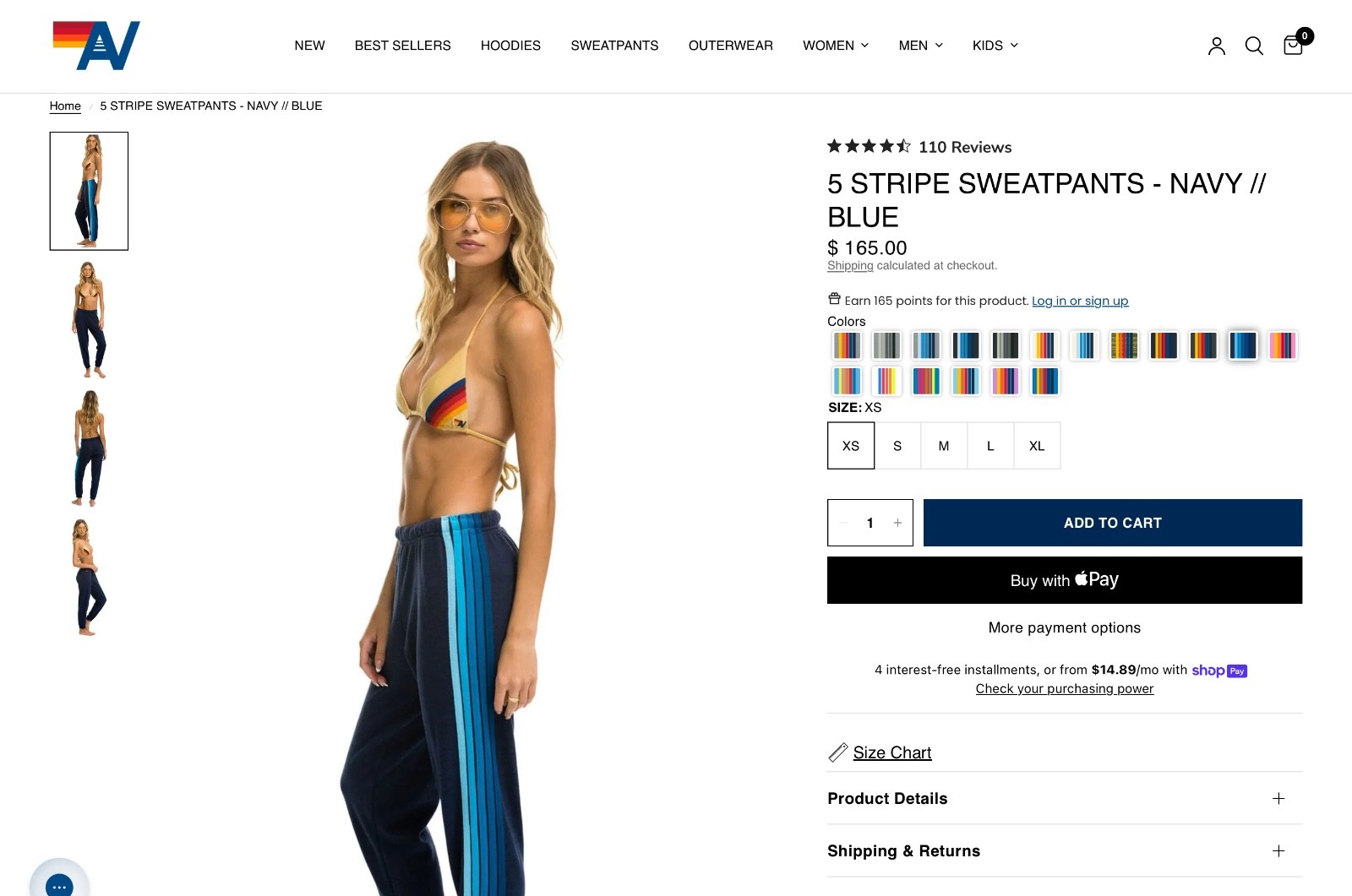 165 AVIATOR NATION Women's 5 Stripe Sweatpants Jogger - Navy / Blue Striped - L